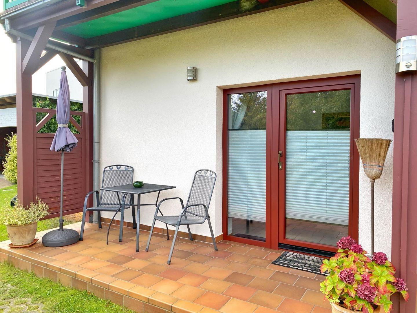 Die 1-Raum-Ferienwohnung (ca. 35 qm) befindet sich im Erdgeschoss und ist über die Terrasse erreichbar.