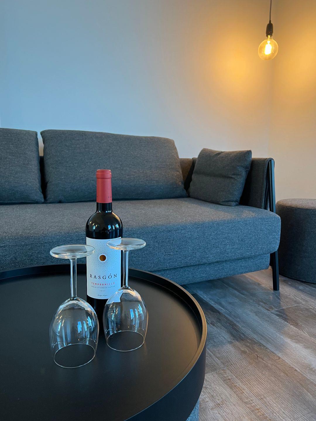 Der großzügige Wohn- und Essbereich ist mit einem Sofa sowie einem Esstisch (180 cm x 90 cm) ausgestattet. Für einen gemütlichen Fernsehabend steht ein 50“ Fernseher mit Kabelanschluss für dich bereit. Auch deinen Netflix-Account kannst du darauf nutzen. In der gesamten Wohnung stellen wir dir selbstverständlich kostenlos einen schnellen, kabellosen Internetzugang zur Verfügung.