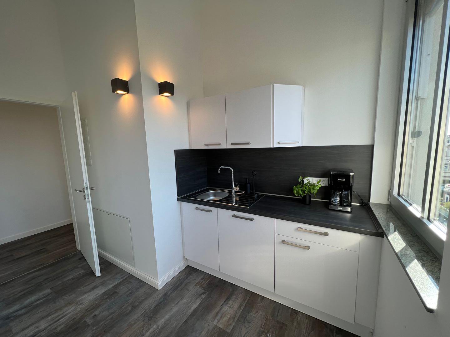 Im Eingangsbereich des Apartments befindet sich eine Garderobe. Innerhalb des Gebäudekomplexes steht dir eine Waschmaschine mit Waschmittel sowie ein Trockner zur Verfügung. Diese kannst du gegen eine Gebühr von jeweils 2,50 € je Wäsche bzw. Trocknung nutzen. Die Bezahlung und Reservierung der Maschinen läuft unkompliziert über die App „WeWash“. Ein Wäscheständer, ein Bügeleisen sowie ein Bügelbrett stehen für dich im Waschraum zur Nutzung bereit. Dein Fahrrad kannst du im Keller des Gebäudes abstellen.