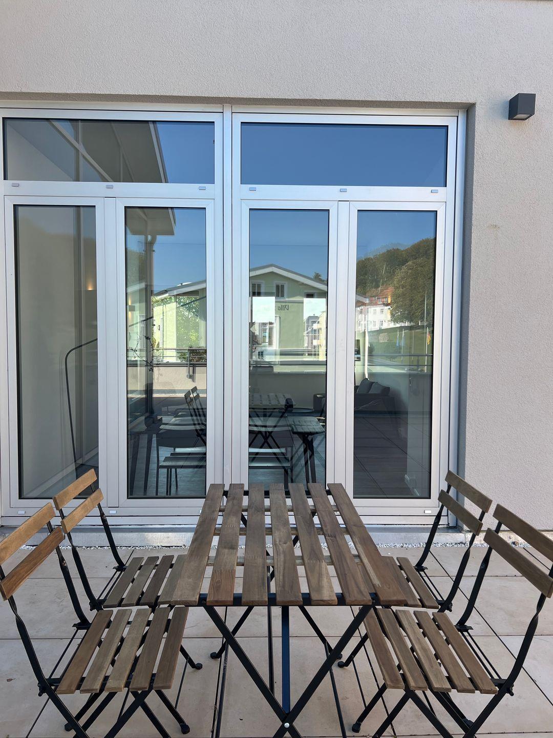 Das 73 qm große 3-Zimmer Apartment (Nichtraucher) befindet sich im 2. Obergeschoss eines 2022 renovierten Gebäudes und bietet Platz für zwei Erwachsene und zwei Kinder. An den Wohnbereich grenzt die zugehörige Dachterrasse mit Gartenmöbeln an. Auf dem Grundstück stehen Stellplätze für dein Auto zur Verfügung.
