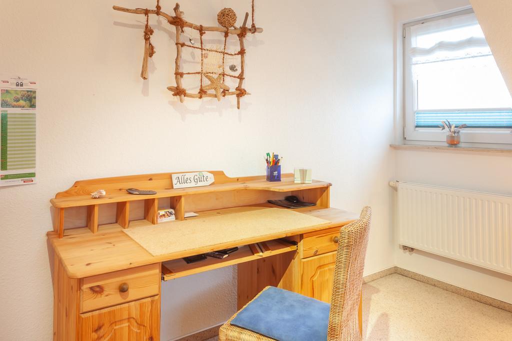 Die Küche ist separat und ebenfalls hell, freundlich und großzügig mit Esstisch und moderner Einbauküche im Landhausstil ausgestattet. Neben Geschirrspüler, Mikrowelle, Kühlschrank mit Gefriermöglichkeit, Ceranfeld und Backofen sind eine Kaffeemaschine, Wasserkocher und Toaster selbstverständlich.