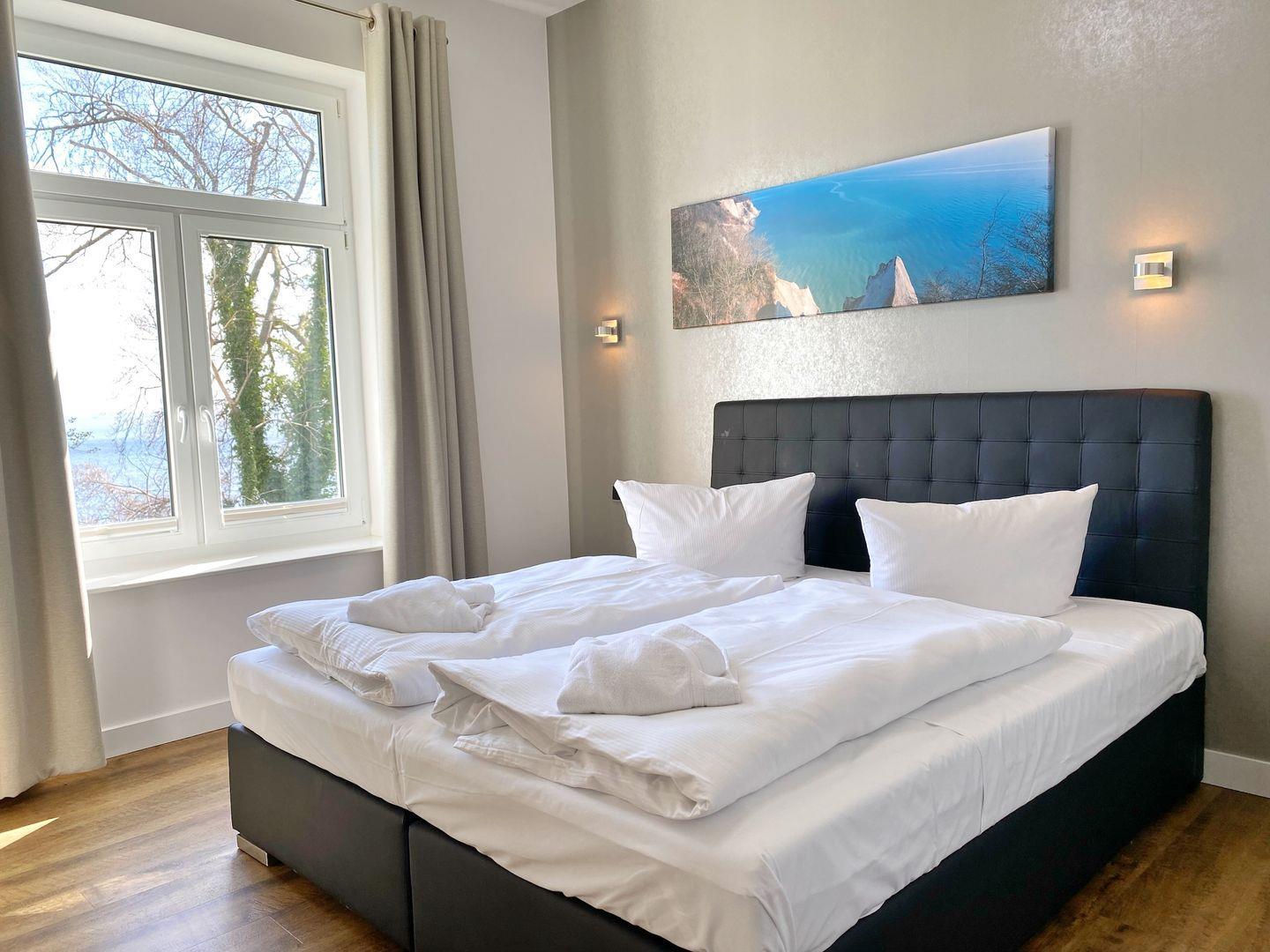 Die Villa "Gössel", eine schön sanierte Bäderstil-Villa mit weißen Holzbalkonen, befindet sich in traumhafter Lage direkt am Hochufer von Sassnitz mit herrlichem Blick auf die Ostsee.