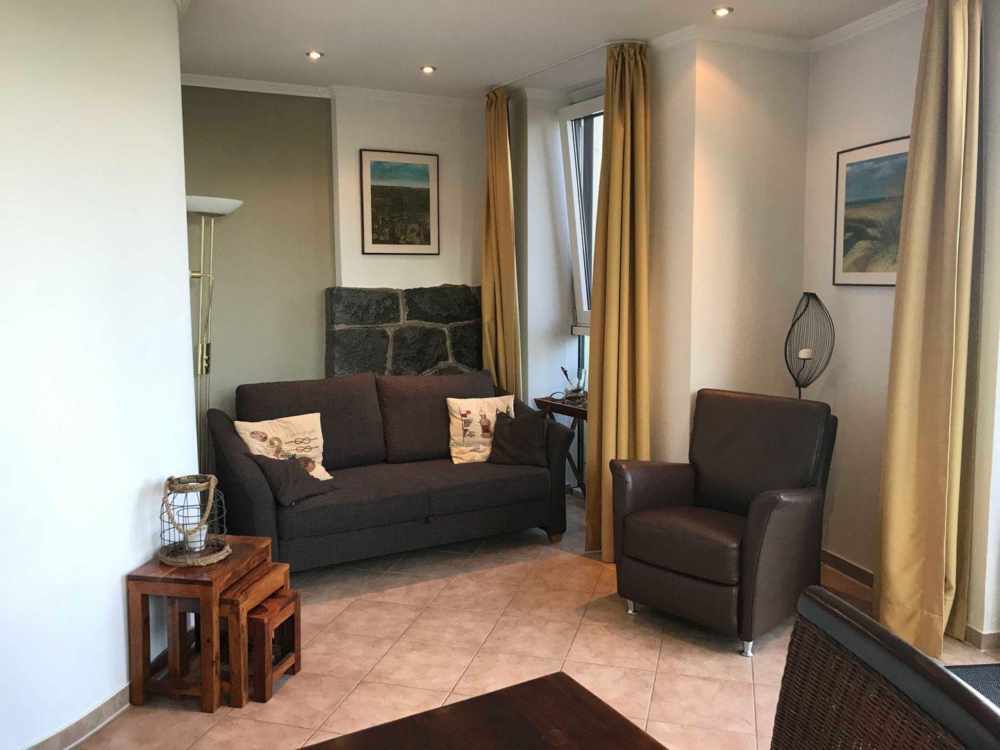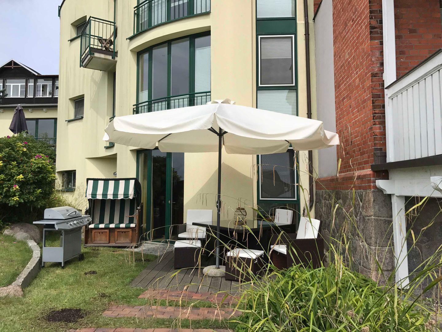 Terrasse, nach Süden ausgerichtet mit Strandkorb und einmaligen Meerblick