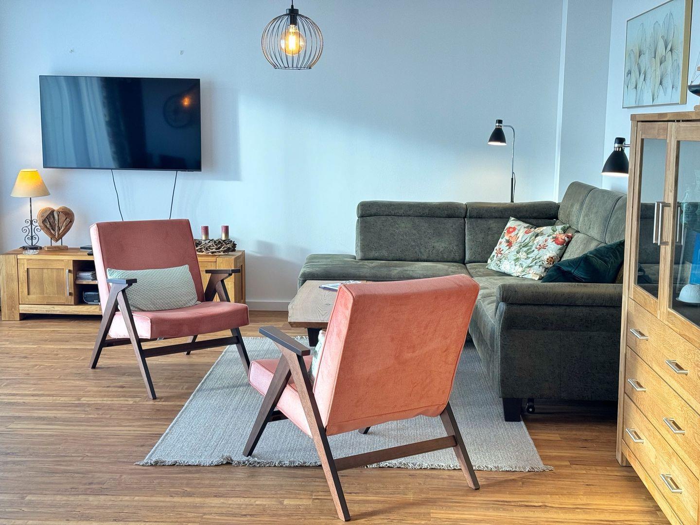 Die Wohnung ist hell, freundlich und mit modernen Möbeln eingerichtet.