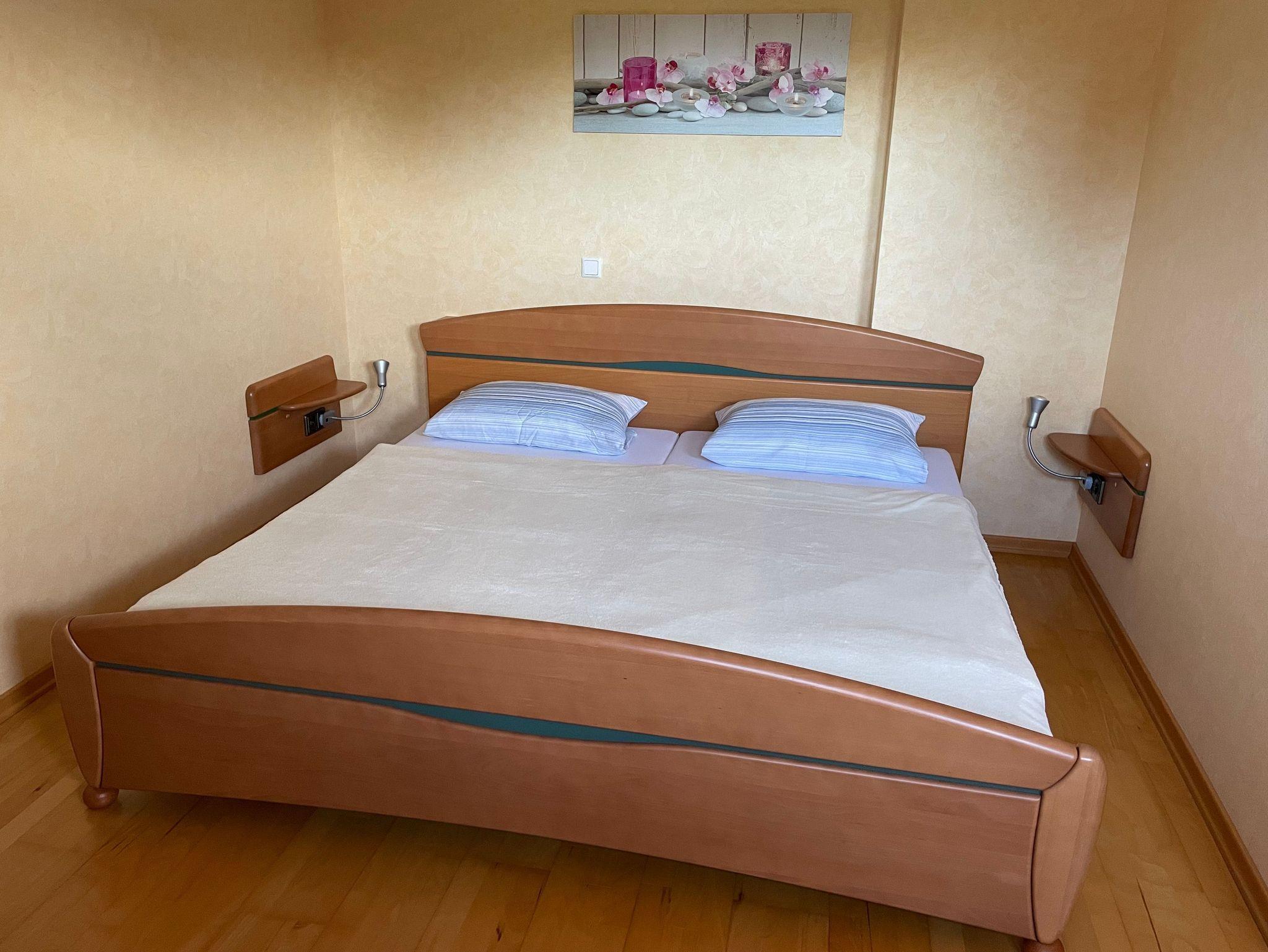 • ein Doppelbett, 2 m x 2 m Fläche mit höhenverstellbarem Lattenrost