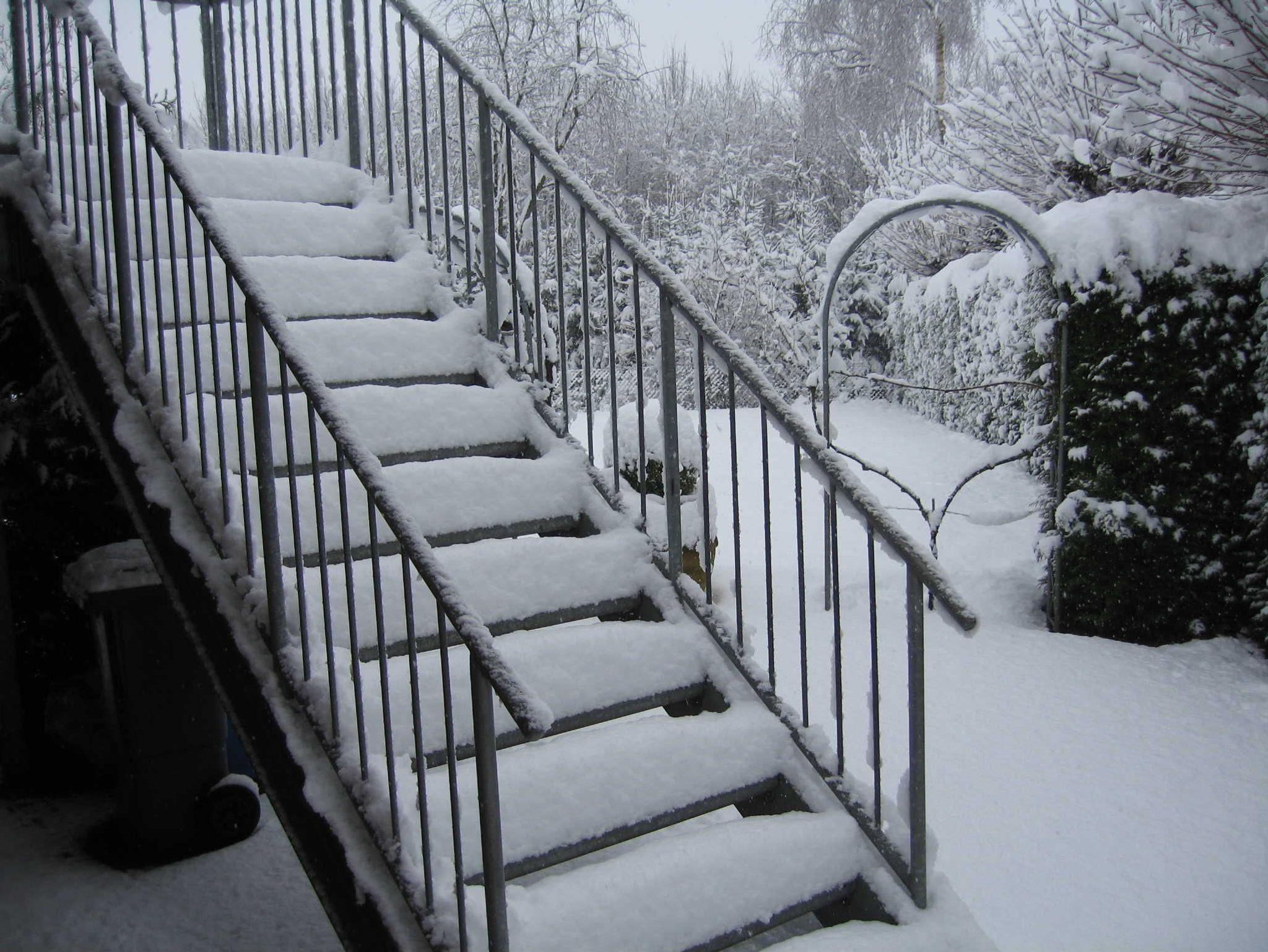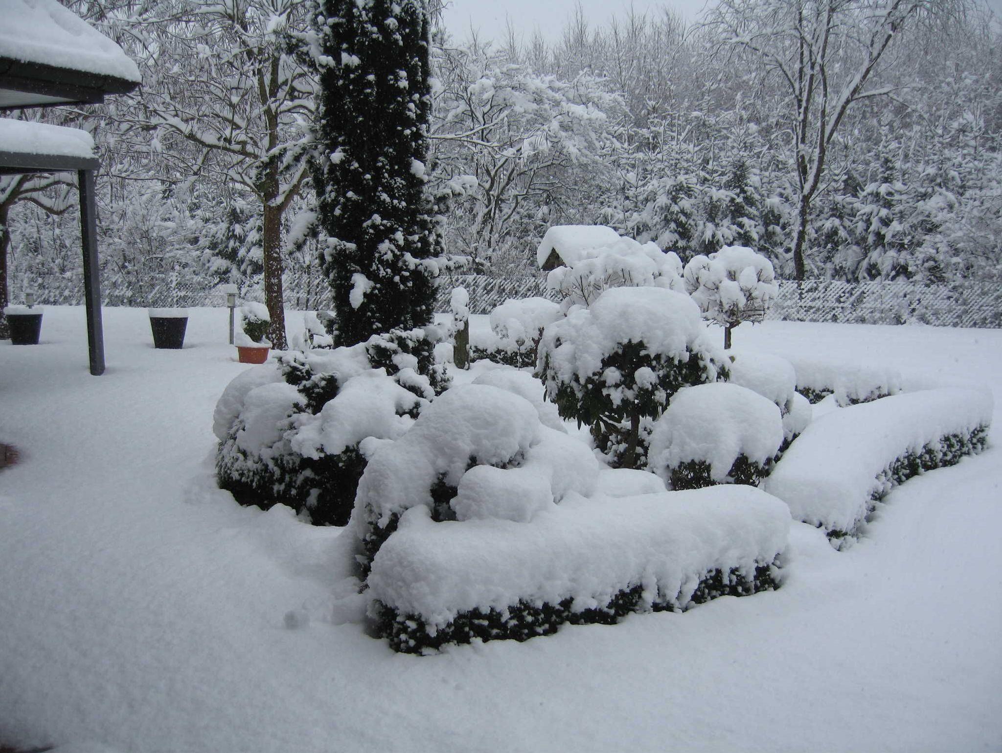 • Terrassenmöbel: Tisch, zwei Stühle mit Auflagen und eine Bank