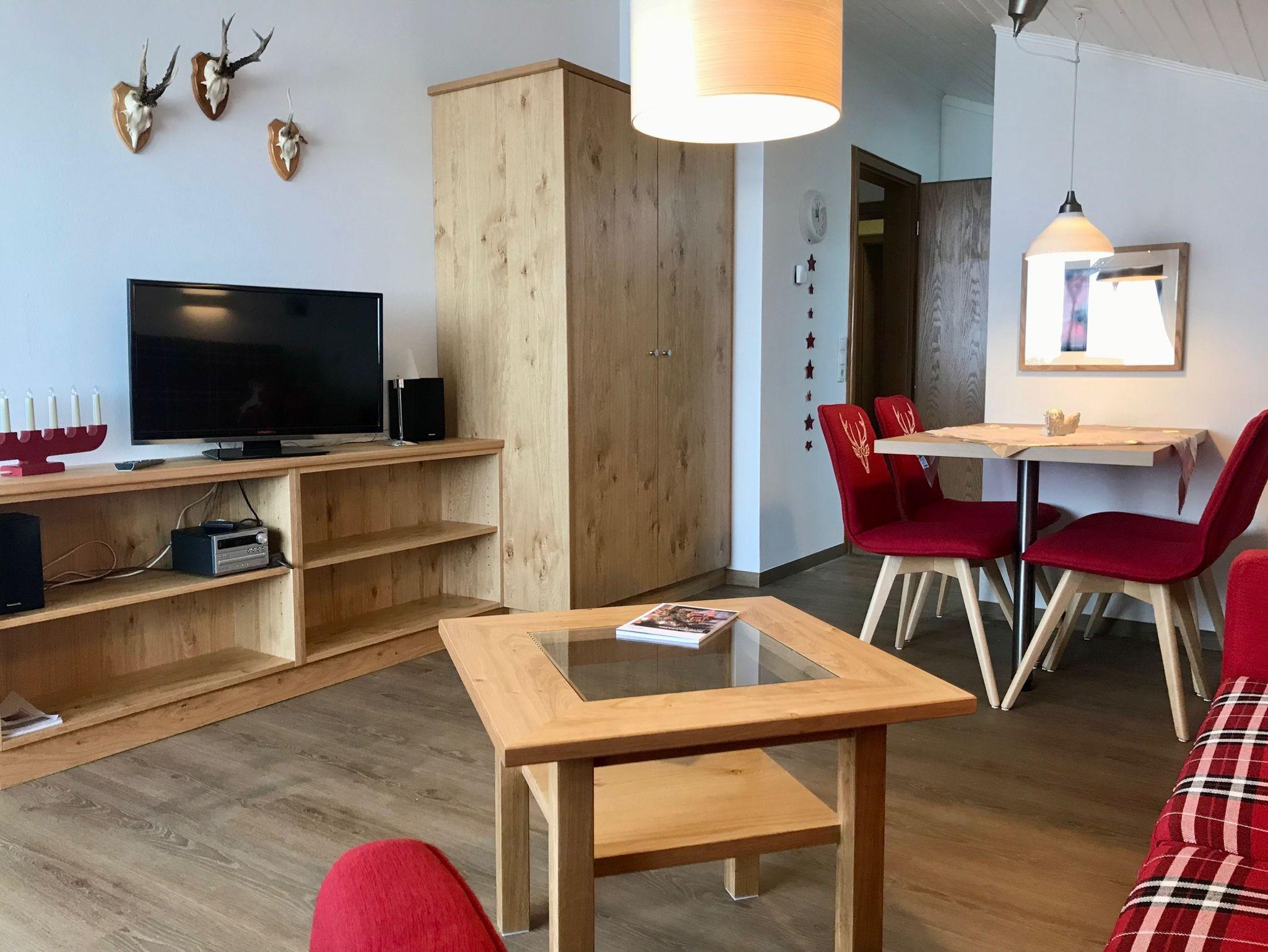 Die Ferienwohnung Nr. 6 Hoher Göll besteht aus einem großzügigen Wohnraum mit kompletter Küche, Esstisch, Sitzgruppe mit Farb-TV, Schlafzimmer, Duschbad mit WC und Vorraum. Die Ferienwohnung bietet Ihnen Platz für die schönste Zeit des Jahres zum abtauchen und Seele baumeln lassen. Der großzügige süd-ost Balkon, lädt ein zum sonnigen Frühstück am Morgen oder einem Glas Wein am Abend mit herrlichem Blick auf die Bergkette mit Kehlstein, Hohem Göll, Hohem Brett und Jenner mit dem Hagengebirge.