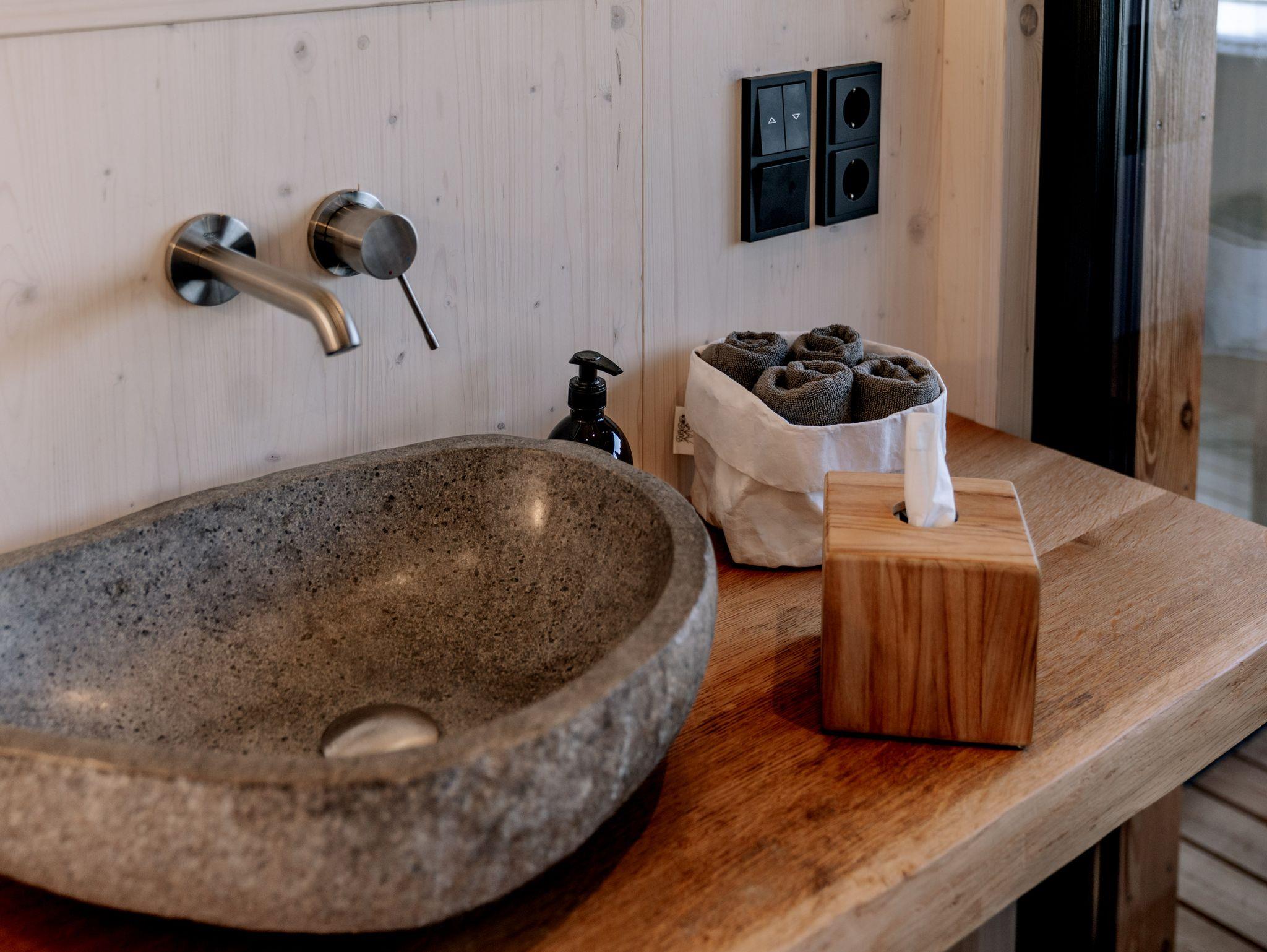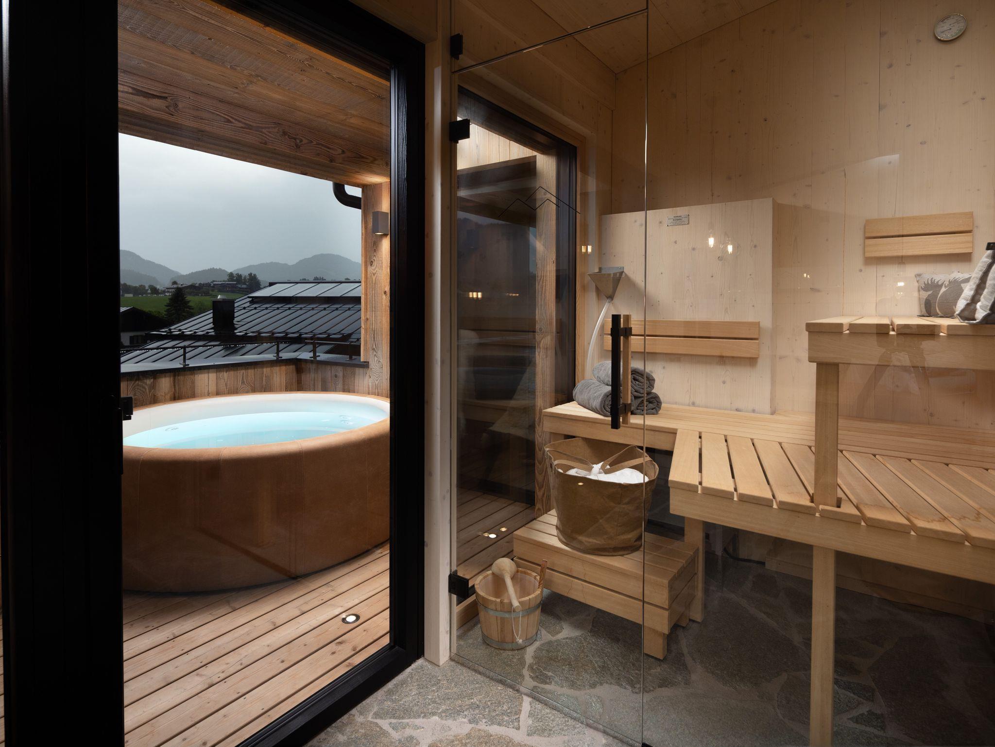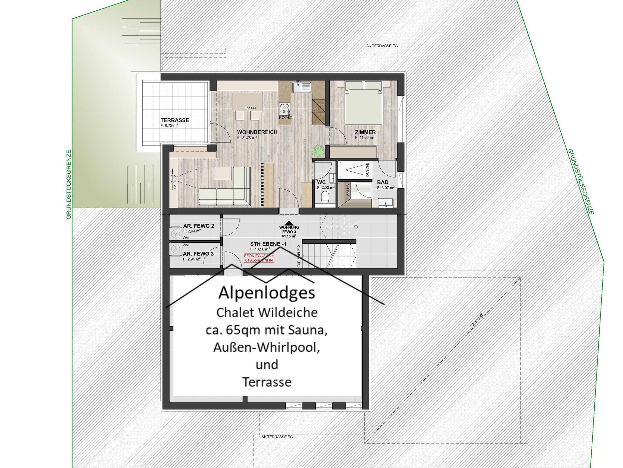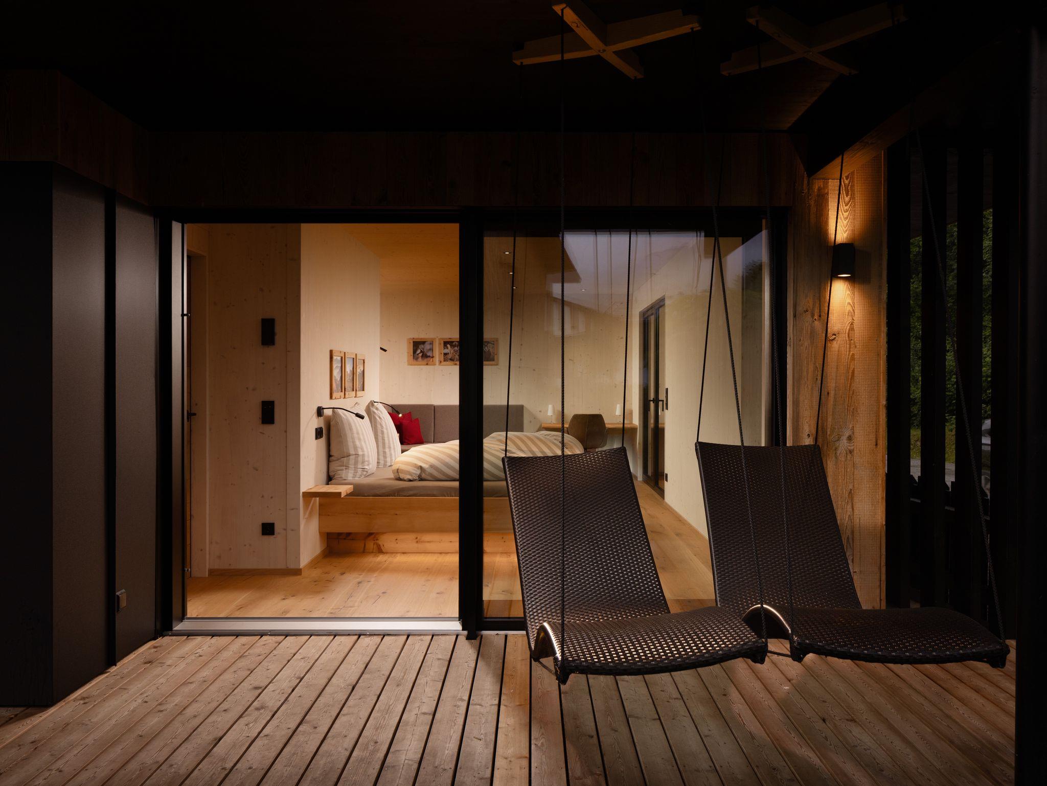 Alpenlodges Chalet Wildeiche, 65 qm, separates Schlafzimmer, Bad, Sauna, Terrasse