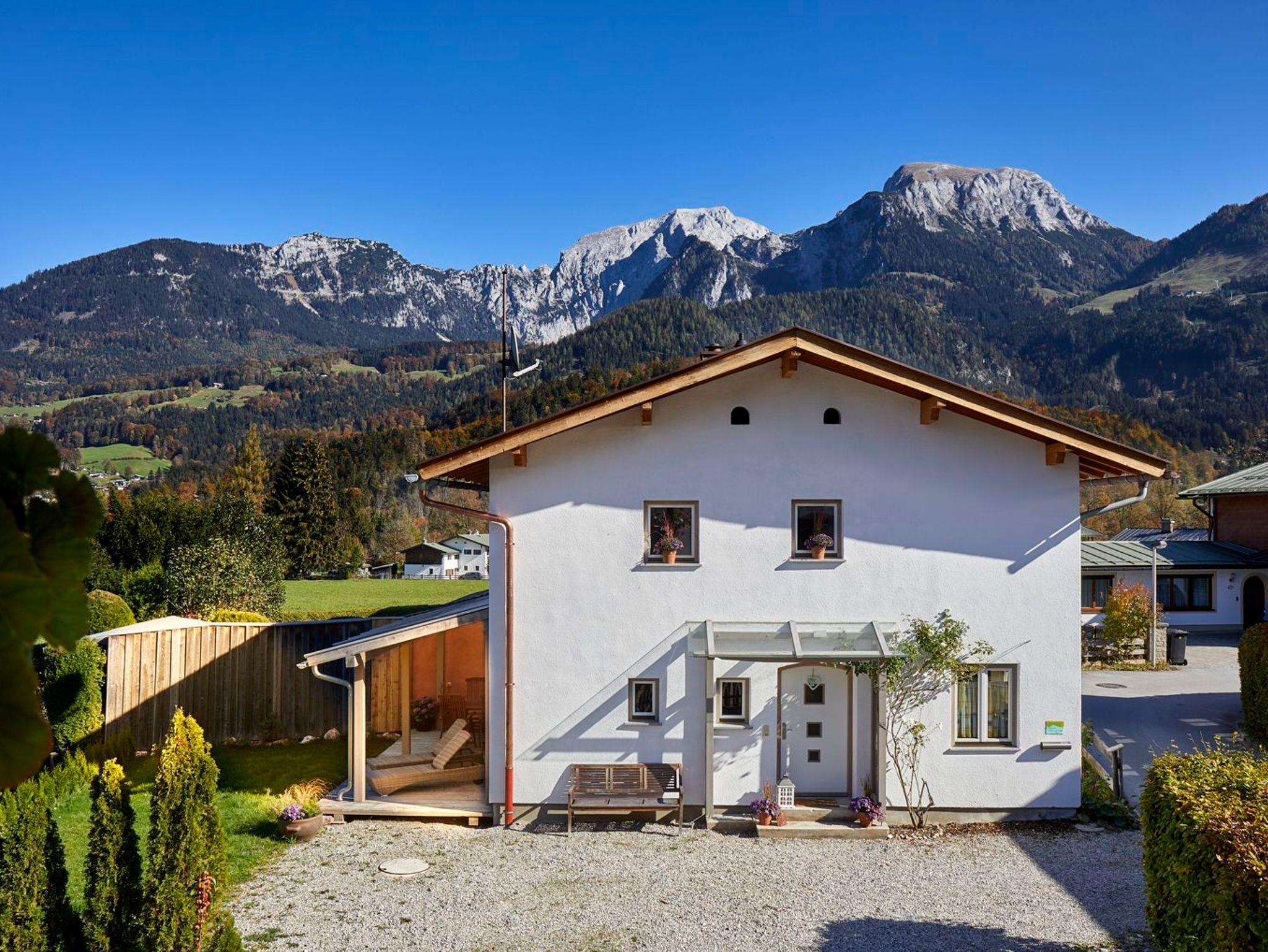 Ferienhaus Kaffeesatz – Geschmackvoller Urlaub am KönigsseeMitten in Schönau am Königssee, zentral im Tal und gleichzeitig in einer ruhigen Umgebung, findet sich dieses besondere Ferienhaus. Absoluter Pluspunkt: Die glasüberdachte Terrasse und davor eine eigene Liegewiese. Hochwertig, auf einander abgestimmt und gemütlich ist die Inneneinrichtung des Ferienhauses Kaffeesatz. Das Wohnzimmer besticht mit einem großen Panoramafenster, Ledersofa, Fernseher, Musikanlage und Holzparkettboden. Gegessen wird an einem großen Eichentisch. Die Küche ist vollständig ausgestattet mit Herd, Backofen, Spülmaschine, Kaffeemaschine, Mikrowelle, Rührgerät, Toaster und Saftpresse. Einen Akzent setzt der moderne Kühlschrank im Stil der Sixties.Die drei Schlafzimmer sind jeweils mit einem Schrank sowie zweimal mit Doppelbett und einmal mit zwei Einzelbetten eingerichtet. Im modernen Bad mit reichlich Platz für Utensilien steht eine Waschmaschine. Im ersten Stock befinden sich eine gemütliche Leseecke und ein Schreibtisch, ein separater Raum im Erdgeschoß eignet sich zum Unterstellen von Fahrrädern oder Kinderwagen. Der Königssee ist zu Fuß in ca. 20 Minuten erreichbar. In die andere Richtung führt ein Fußweg immer am Fluss entlang bis zum Bahnhof Berchtesgaden. Die Hochebene der Oberschönau lädt zu ausgiebigen Spaziergängen ein. Radtouren beginnen direkt ab der Haustür. Zum Bäcker, ins bairische Gasthaus oder zur Pizzeria sind es nur wenige Meter. In unmittelbarer Nähe des Ferienhauses ist ein öffentliches Freibad. Zum Königssee - und damit auch zum Nationalpark Berchtesgaden sind es 2,6 km, ins historische Ortszentrum von Berchtesgaden 6 km, zur Jennerbahn 2,7 km. Die Mozartstadt Salzburg erreichen Sie mit dem Auto in 30 Minuten. Das Ferienhaus ist idealer Ausgangspunkt für Wanderungen, Bergtouren, Radtouren oder zum Skifahren.