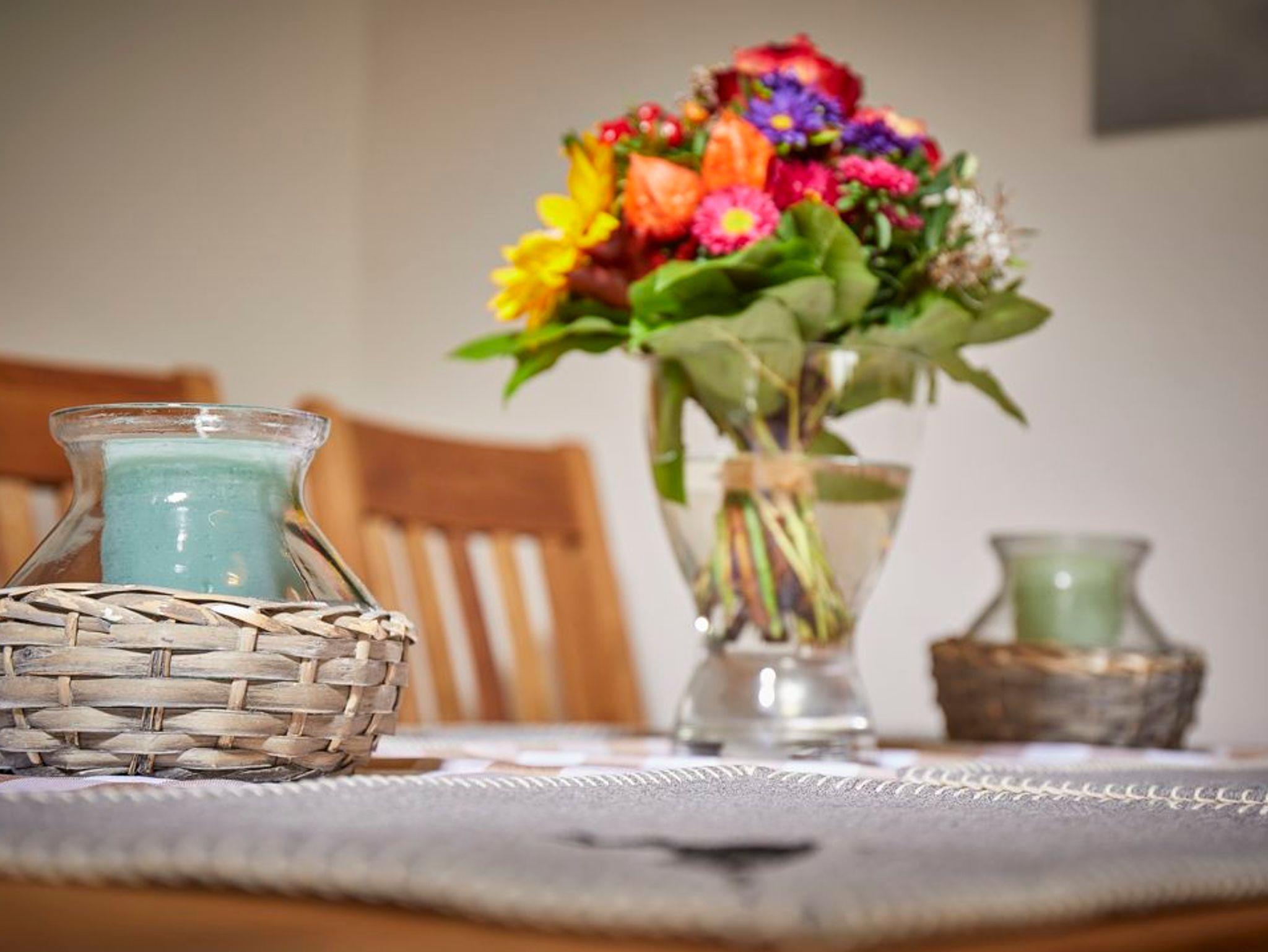 Liebevolles, gemütliches Ferienhaus mit Holzparkettböden, Glasüberdachter, windgeschützte außen Terrasse. Drei seperate Schlafzimmer, zwei WCs und einem neuen geräumigen Bad mit Waschmaschine und Trockner. Neuer Eichentisch, Essgruppe, Ledersofa und Sessel, TV, DVD und Wecker, Panoramafenster. Gemütliche Küche mit Spühlmaschine, Kaffeemaschine, Toaster, Saftpresse, Wasserkocher,... separate Sitzecke und neuen sechziger Jahre Kühlschrank. Abstellraum mit Gaderobe, Bügeleisen und viel Stauraum. Entzückendes Holztreppenhaus in hellen Farben.