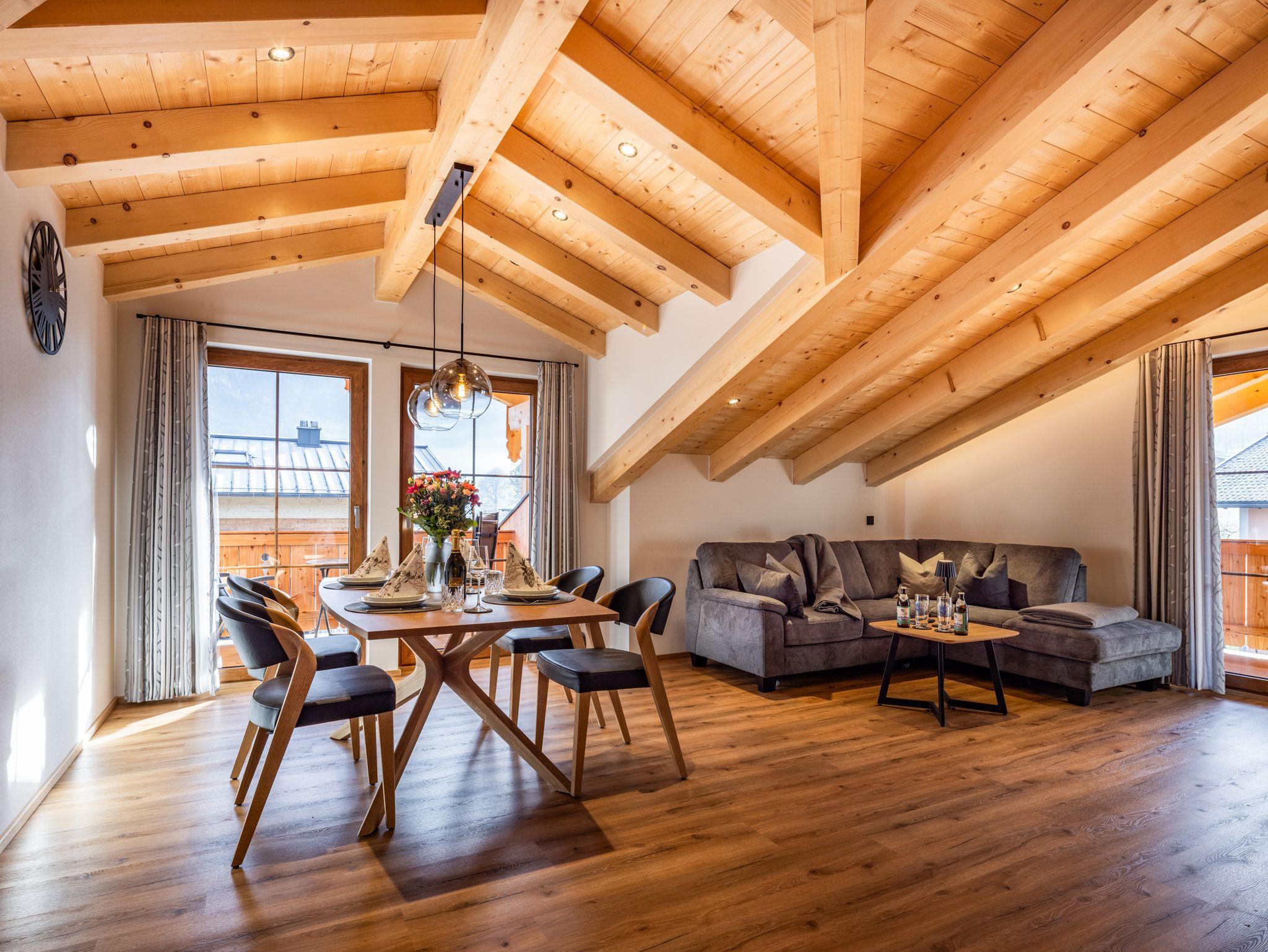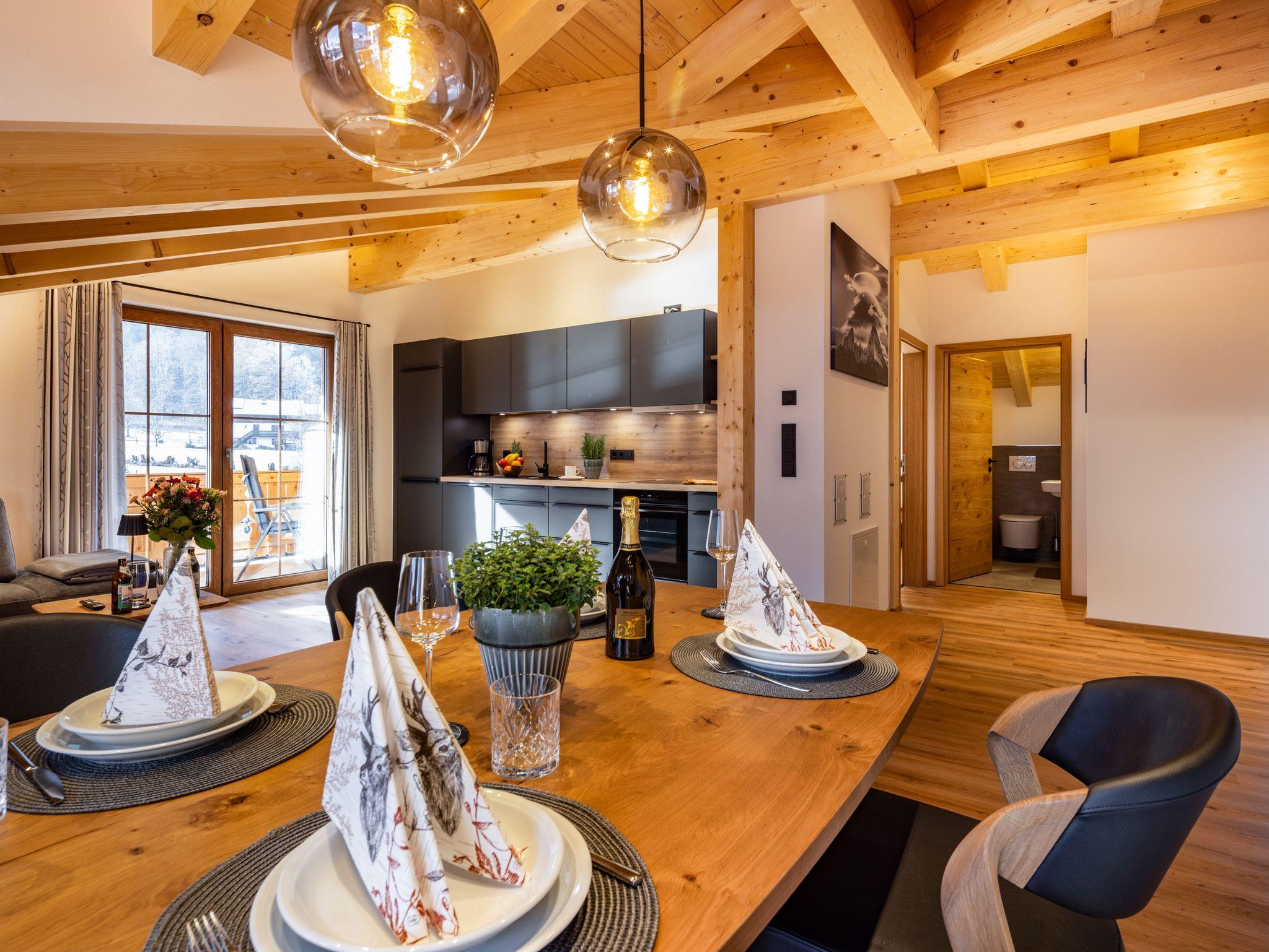 Luxuriöse neu gebaute Dachgeschoss- Ferienwohnung Stilvoll und mit Liebe zum Detail eingerichtet erwartet Sie ein edler Wohnbereich mit integrierter Küche, zwei Schlafzimmern sowie ein modernes Bad mit Dusche und WC plus zusätzlichem separatem WC. Drei Fernseher- je einer in beiden Schlafzimmern und im Wohnbereich-sorgen für angenehme Unterhaltung. Auf den zwei großzügigen Balkonen( Süd und Ostausrichtung) eröffnet sich ein beeindruckendes Bergpanorama, das zu jeder Tageszeit zum Innehalten einlädt. Die Lage ist ideal: mehrere Gaststätten, Pizzeria, Bäckerei,Bushaltestelle und ein Freibad sind in rund 5 Minuten fußläufig erreichbar. Der Königssee ist bei einem 15-20 minütigen Spaziergang bequem erreichbar.