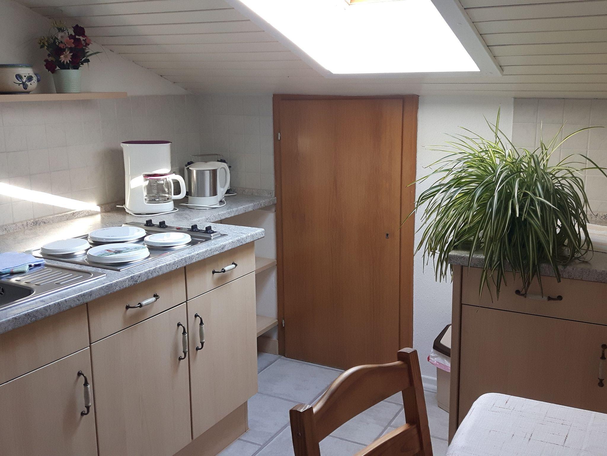 Die Nichtraucher-Ferienwohnung befindet sich im 1. Stock und bietet Platz auf 36 qm. Sie verfügt über ein separates Schlafzimmer, einen Wohnbereich mit Kühlschrank, Mikrowelle, 2-Platten Elektroherd, Essecke, Sitzgruppe, HD-TV, Radio, Bad mit Dusche/WC, Handtüchern, Fön und Toilettenartikel, sowie einen Balkon mit Balkonmöbel.