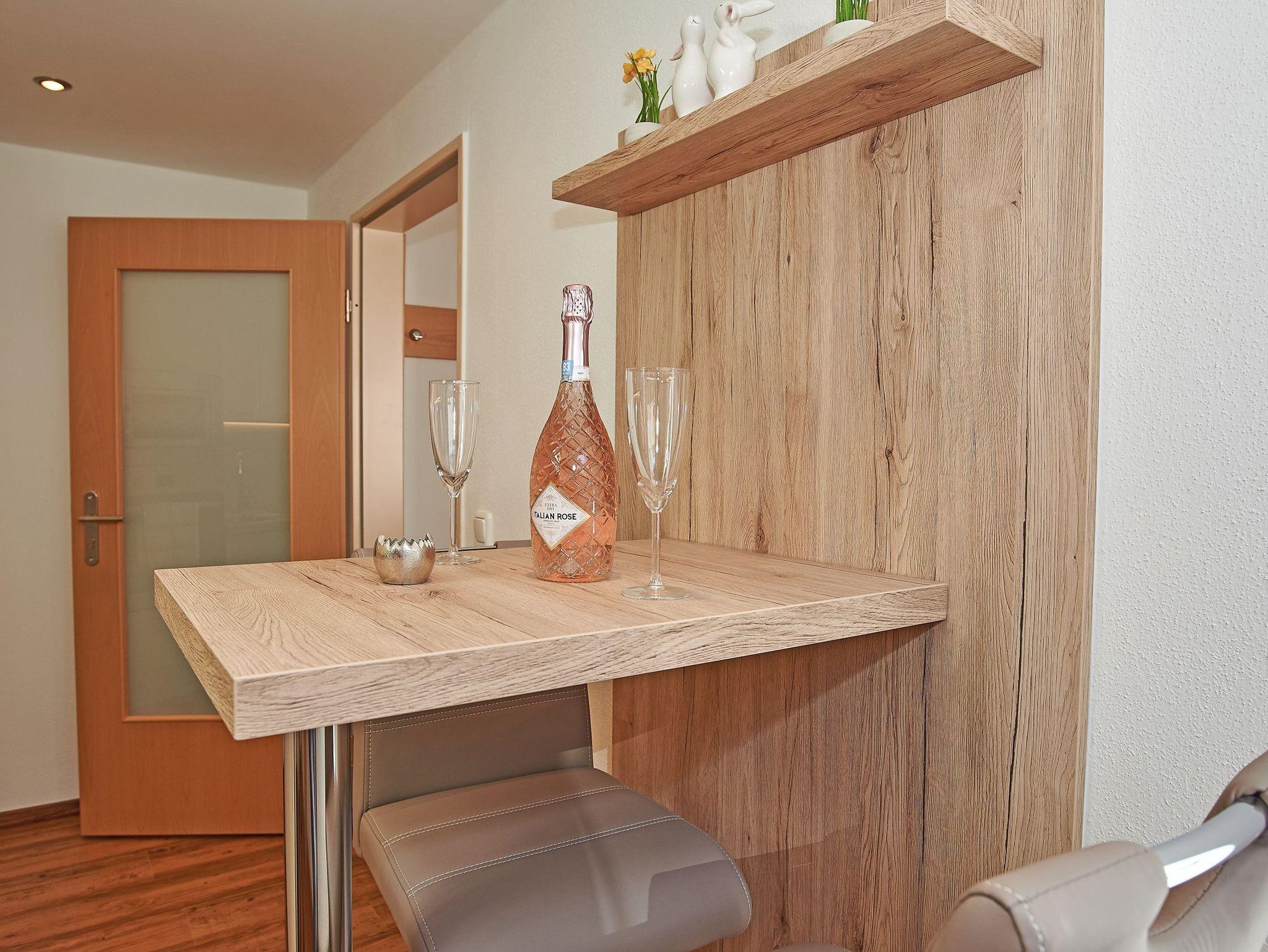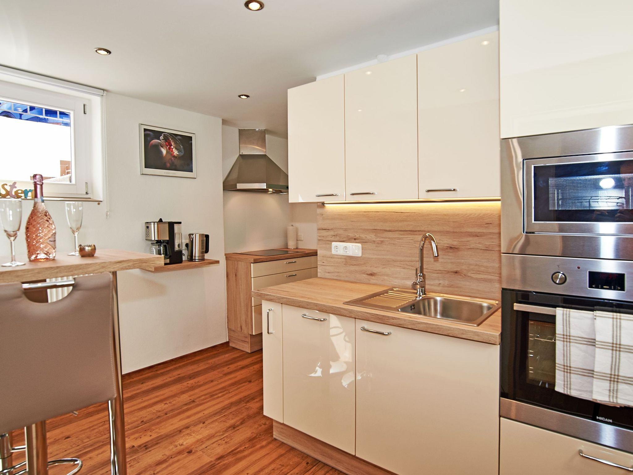 Im Winter 2022 wurde dieses moderne Ferienappartement mit Terrasse neu gestaltetet und bietet Platz für 2 Personen. Es eignet sich für Allergiker und ist mit Parkettböden ausgestattet. Unsere Dreizimmerwohnung verfügt über eine vollausgestattete Küche mit großem Kühlschrank/Gefrierfach, Mikrowelle, Backofen, Ceranfeld, Kaffeemaschine, Küchenutensilien, Geschirrspülmaschine und Spüle. Eine Kaffeebar mit 2 Barstühlen (höhenverstellbar) laden zum Morgenkaffee ein. Ein großzügiges Wohnzimmer mit Esstisch, 4 Stühlen und gemütlicher Ausziehcouch mit Tisch, sowie Elektrokamin (beheizbar) sorgen für Ihr Wohlgefühl. Ein LCD Flachbild DVBT -TV und eine Micro Stereoanlage bieten gute Unterhaltung, Safe und Infomappe stehen zur Verfügung. Das separate Schlafzimmer mit Doppelbett je 180 x 200 cm, Bettwäsche und Kommode und Schrank verfügt ebenfalls über einen LCD-Flachbild, Radiowecker, Bettwäsche, Schlummerkissen, Kuscheldecke. Ein großzügiges Badezimmer mit Dusche/WC, Handtücher, Haartrockner, Kosmetikspiegel, Handtuchwärmer, Pflegeprodukte runden diese Wohnung ab. Sie verfügt über einen eigenen Eingang mit großzügiger Garderobe. Kostenloses W-Lan steht selbstverständlich zur Verfügung. Die Terrasse ist bestuhlt und mit Tisch/ Liegen und Sonnenschirm ausgestattet. Ein Staubsauger befindet sich ebenfalls in der Wohnung.Gerne können Sie auch unseren täglichen Brötchenservice gegen Gebühr in Anspruch nehmen. Das Appartement ist nur wochenweise buchbar, Anreise am Sonntag - kürzere Zeiträume nur auf Anfrage! Babybetten/Hochstühle sind zu buchbar.Bitte beachten Sie, dass wir keine Tiere in unserem Haus aufnehmen.Wir empfehlen Ihnen den Abschluss einer Reiserücktrittsversicherung! Bis dato geleistete Anzahlungen erstatten wir mit einem generellen Abzug von 25,00 € Bearbeitungsgebühr.