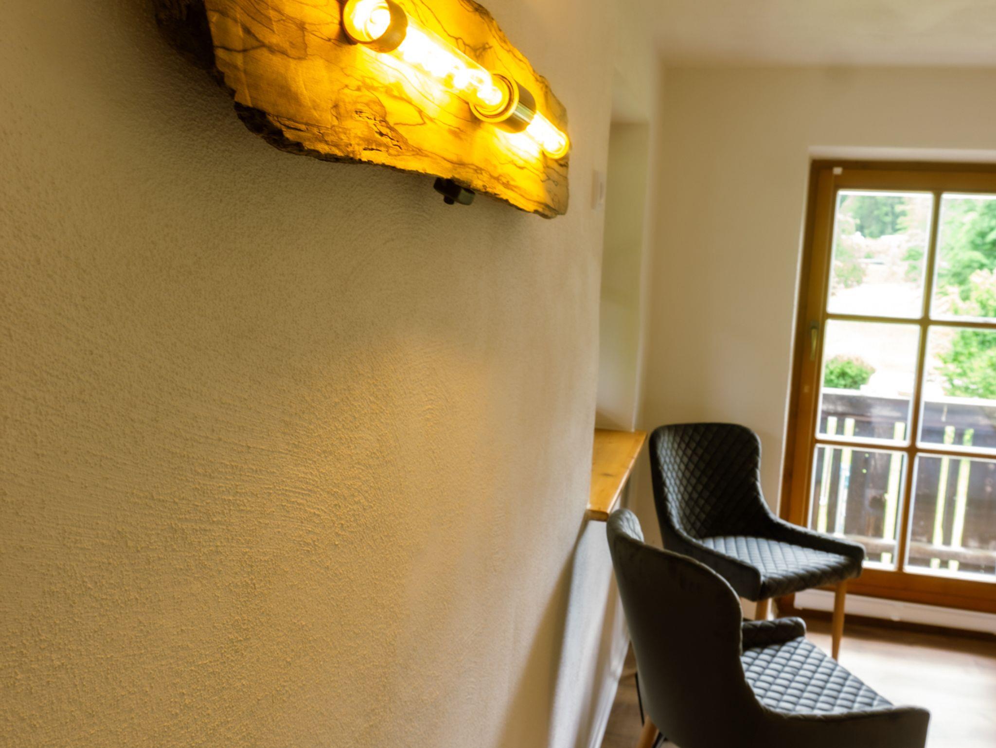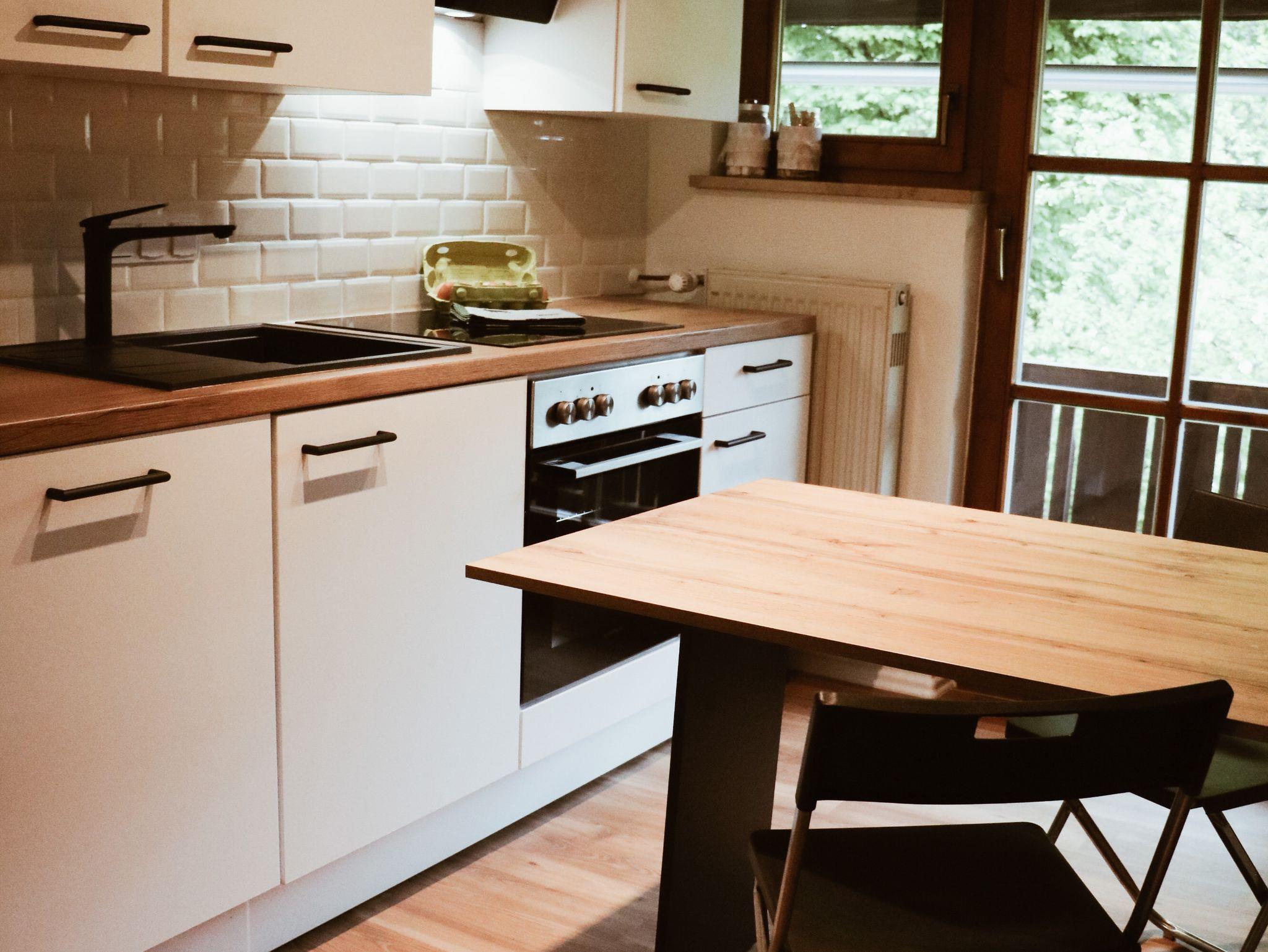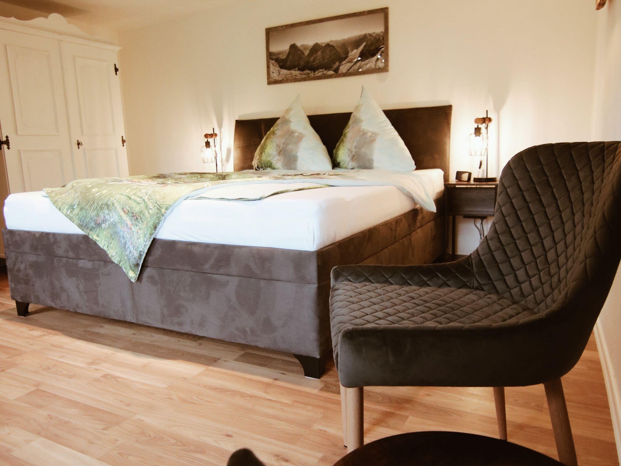 Die neu renovierte, modern ausgestattete Ferienwohnung verfügt über ein Wohn-Esszimmer mit Sat-TV, Radio, 2 Schlafzimmer mit je 1 Doppelbett 1,80m x 2,00m und einem großen Kleiderschrank, 1 Kinderzimmer mit 2 Einzelbetten je 0,90m x 2,00m und 2 Kommoden. Die vollausgestattete Küche bietet einen Elektroherd (4 Kochplatten und Backrohr), Kühl-und Gefrierschrank, Kaffeemaschine, Wasserkocher, Toaster und separater Sitzmöglichkeit. Ein Badezimmer mit Dusche und WC. Im Eingangsbereich befindet sich ein Kamin mit gemütlicher Sitzmöglichkeit. Der Nord-Ost-Südbalkon bietet einen traumhaften Alpenpanoramablick. Im Garten befindet sich eine eigene Terrasse mit großem Tisch, 6 Sitzplätzen und großem Sonnenschirm.