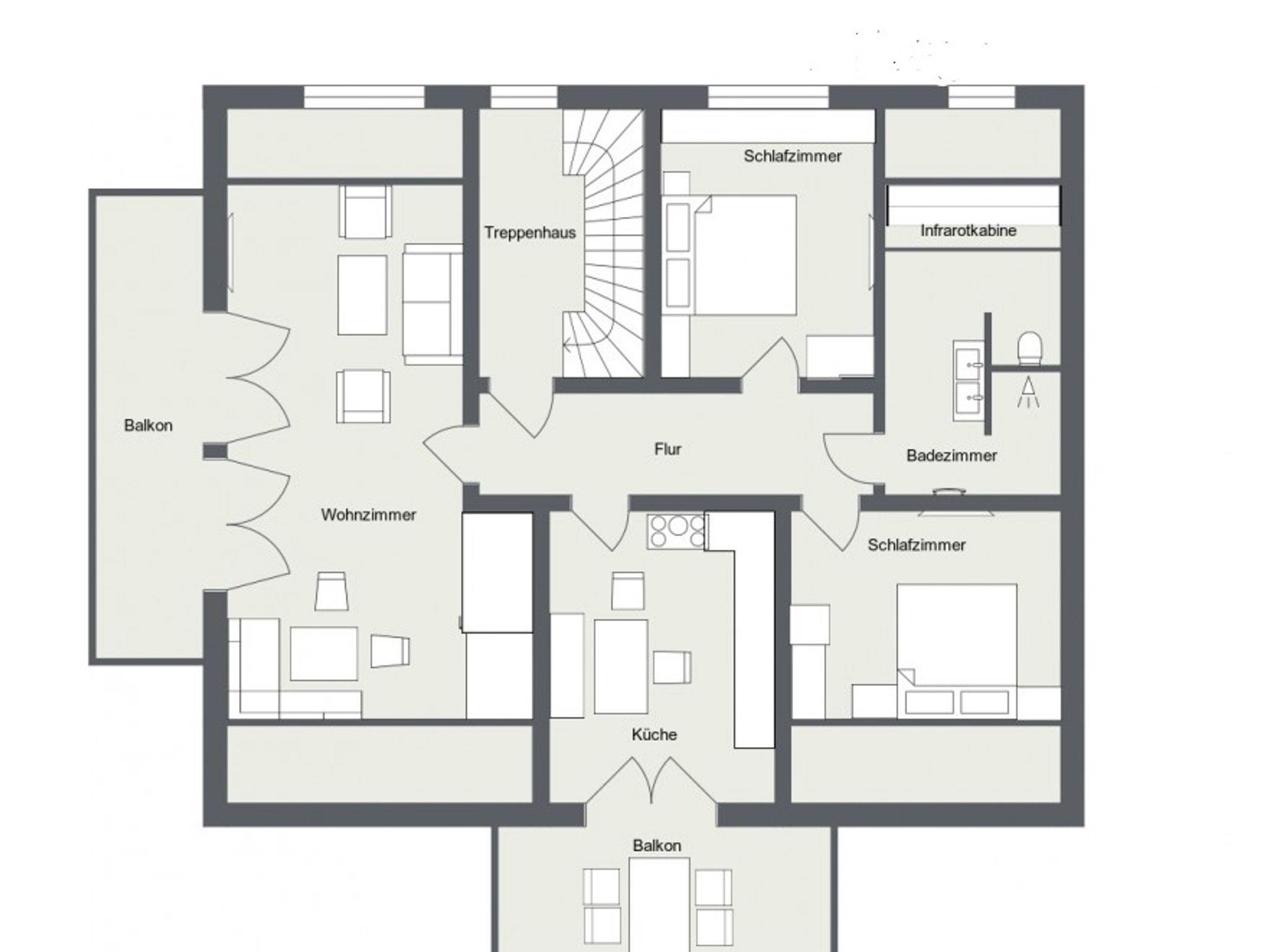luxuriöse Ferienwohnung mit 2 Schlafzimmern und einem Bad mit Infrarotkabine