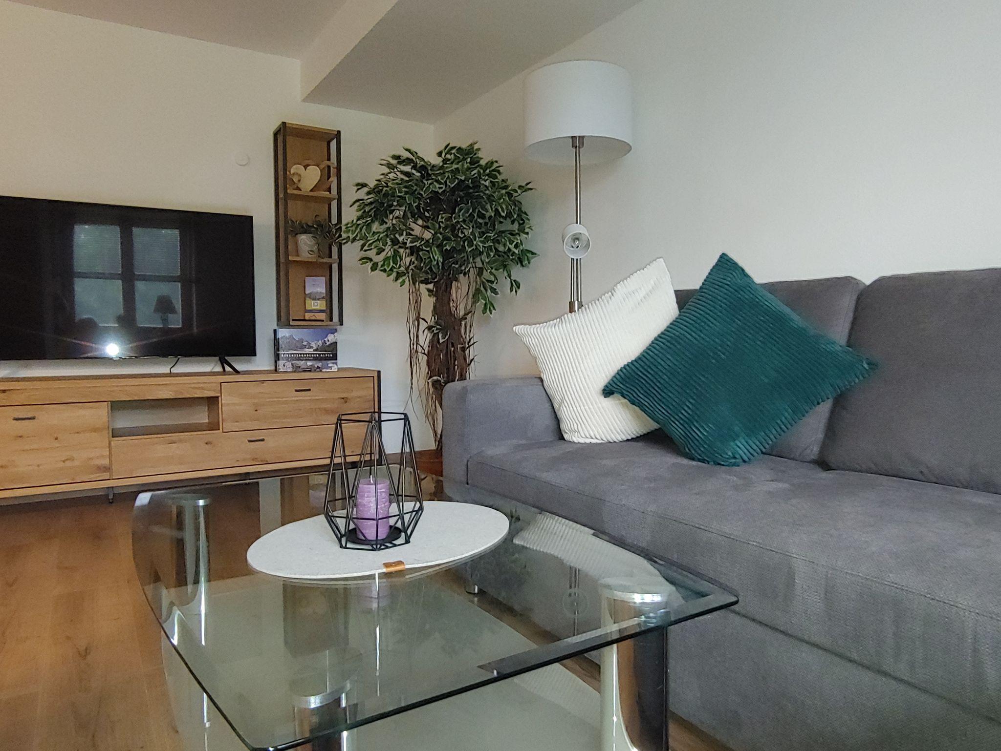 60 m2 zum Wohlfühlen und Entspannen Modern im Landhausstil eingerichtet, bietet diese Ferienwohnung im 2. Stock reichlich Platz für 2-3 Personen auf 60 qm. Der überdachte Balkon bietet Sonne am Nachmittag und Abend und einen wunderbaren Blick auf das Bergpanorama. Hier lässt es sich in Ruhe Urlauben. Das Schlafzimmer besitzt ein Dachfenster, das zur Lüftung auch bei leichtem Regen geöffnet werden kann.