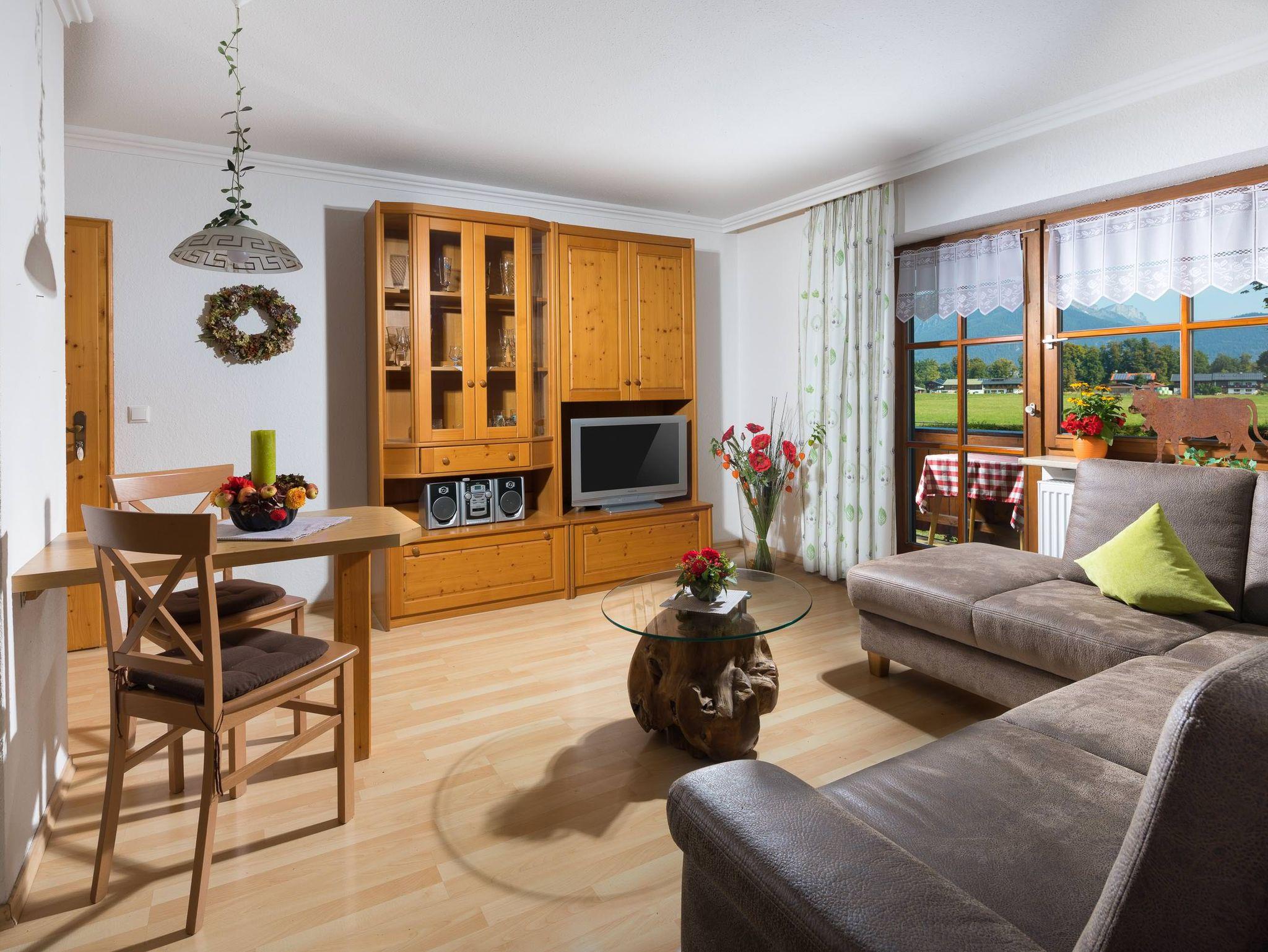 Die gemütliche, sehr ruhige Ferienwohnung bietet Ihnen ein Wohnzimmer mit Couchgarnitur und Essecke. Das separate Schlafzimmer verfügt über Komfortmatratzen mit verstellbarem Lattenrost. Vom großen Balkon haben Sie einen herrlichen Blick auf die Berchtesgadener Alpen. Unsere Ferienwohnungsanlage/unser Appartement wurde nach dem Klassifizierungssystem des Deutschen Tourismus Verbandes als Ferienwohnung/Ferienhaus mit 3 Sternen klassifiziert.