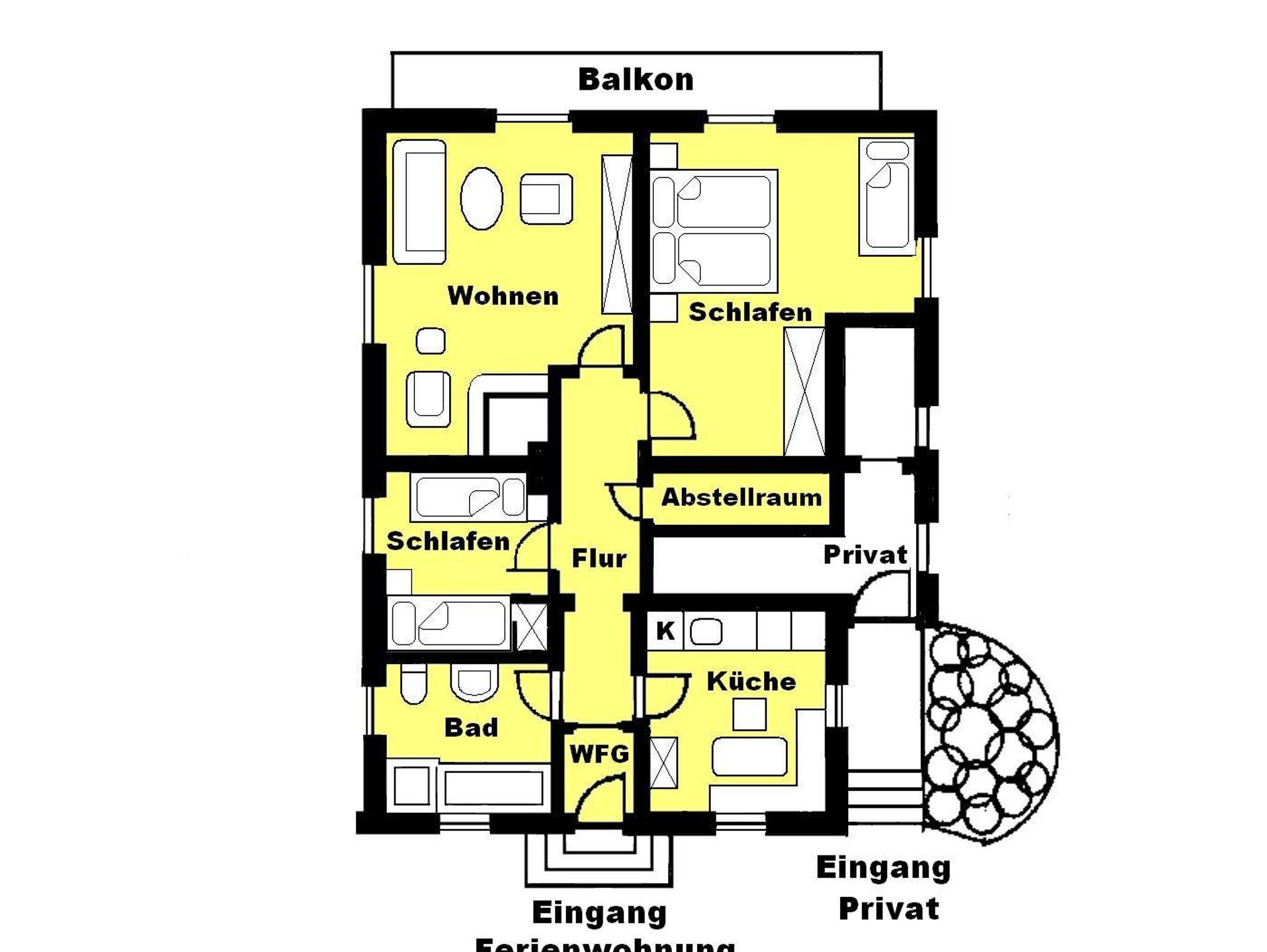 Ferienwohnung Schwöbeck, Ferienwohnung für 1 bis 4 Personen, 80 qm, 2 Schlafzimmer, Balkon