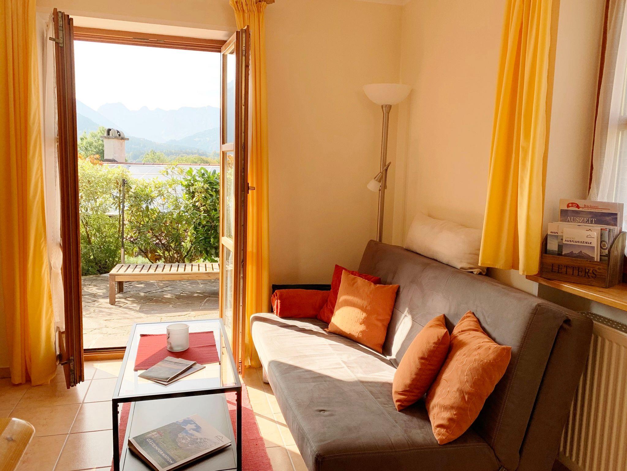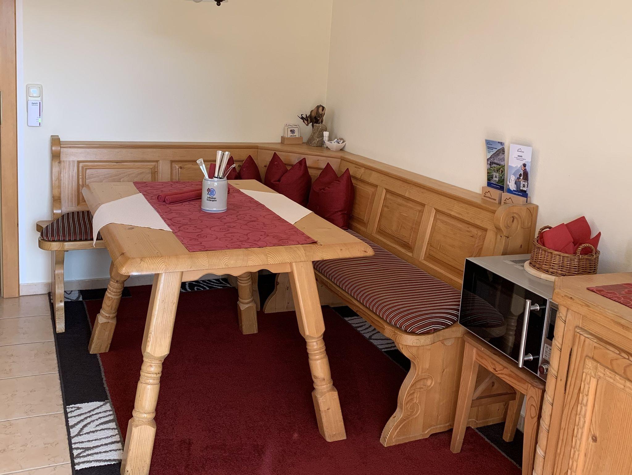 Landhaus Watzmann, Ferienwohnung Untersberg, 2 Personen, 44 qm, 1 Schlafzimmer, Wohn- Esszimmer mit Küchenzeile und Eckbank, Terrasse