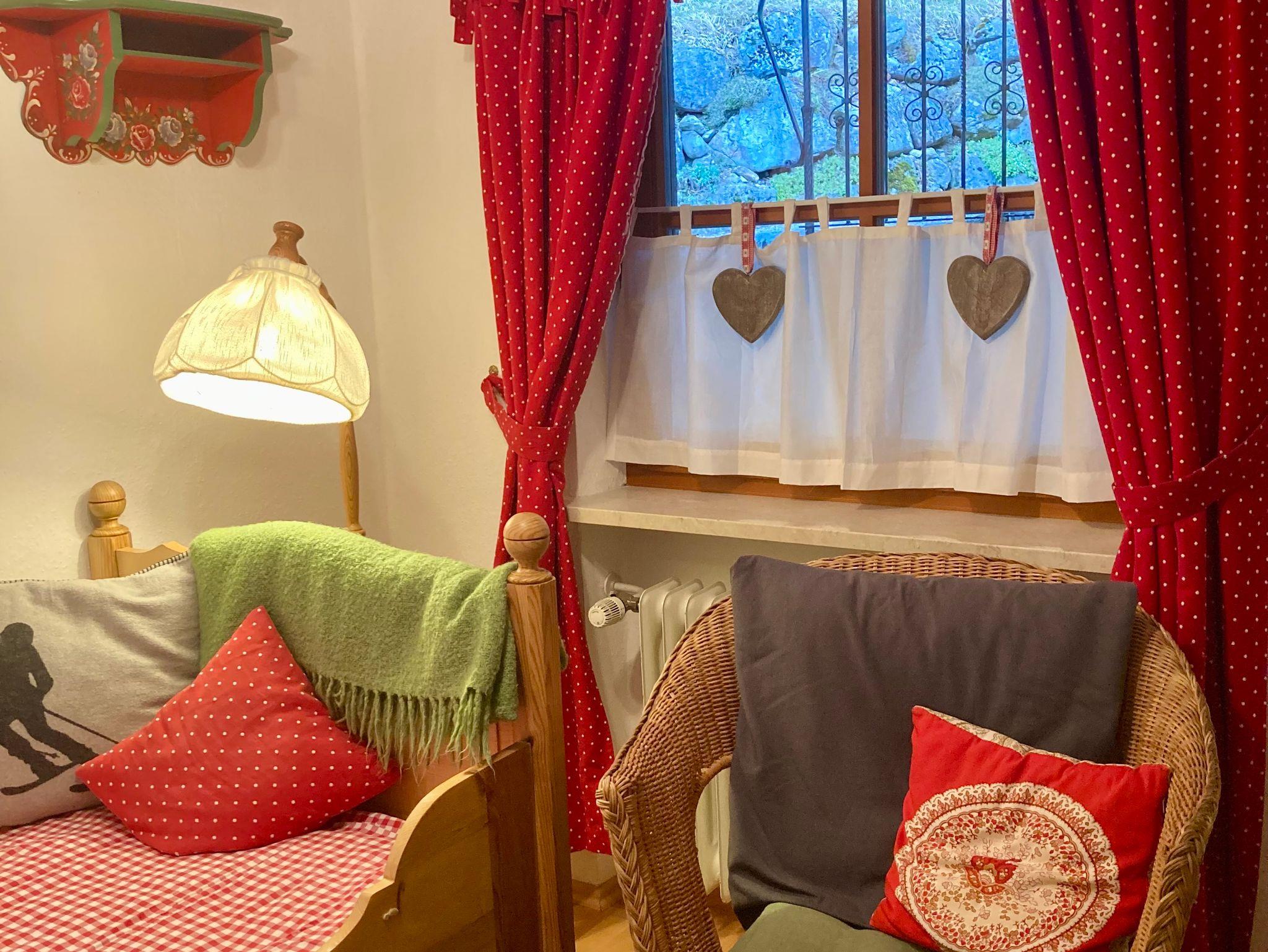 Unser spezieller Freiraum mit altem Holzbett, gemütlichen Kissen und Schaffell ist für Ihre Entspannung da. Nutzen Sie diesen kleinen Extraraum, wenn Sie ungestört schlafen möchten oder für Ihre kleinen Wellnessmomente nach den Bergtouren. Aromatherapie, Arnikaöl, Latschenkiefereinreibung, Akupressurmatte, vielseitige Lektüre: Wanderfüher, Zeitungen, Romane etc.