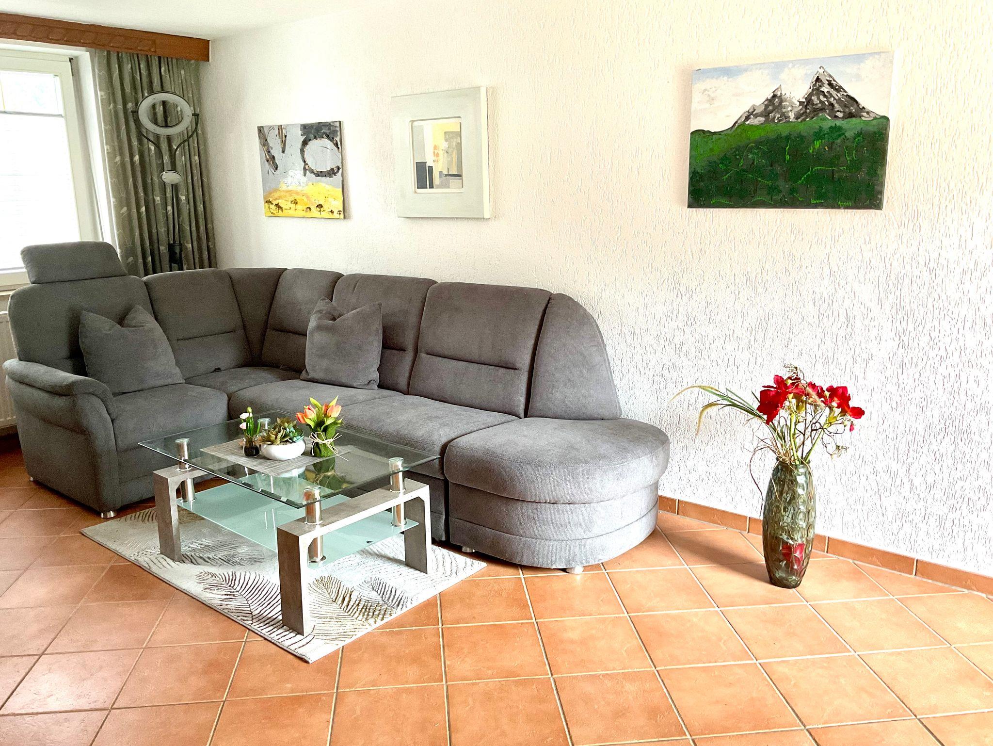 Das Wohnzimmer verfügt über eine große, gemütliche Eckcouch, sowie einen schönen Eßbereich.