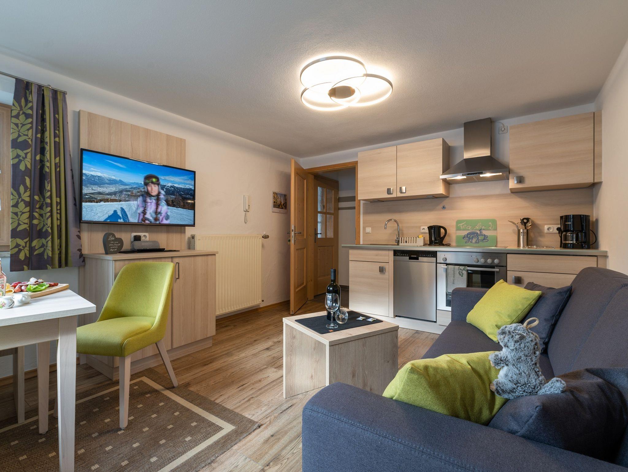 Die Ferienwohnung Grünstein ist eine geräumige und moderne Wohnung, die Platz für 2 Personen bietet. Sie verfügt über 1 Schlafzimmer, ein Wohnzimmer mit einer komfortablen Sitzecke und einem Essbereich, sowie eine voll ausgestattete Küche mit allen notwendigen Geräten und Utensilien.