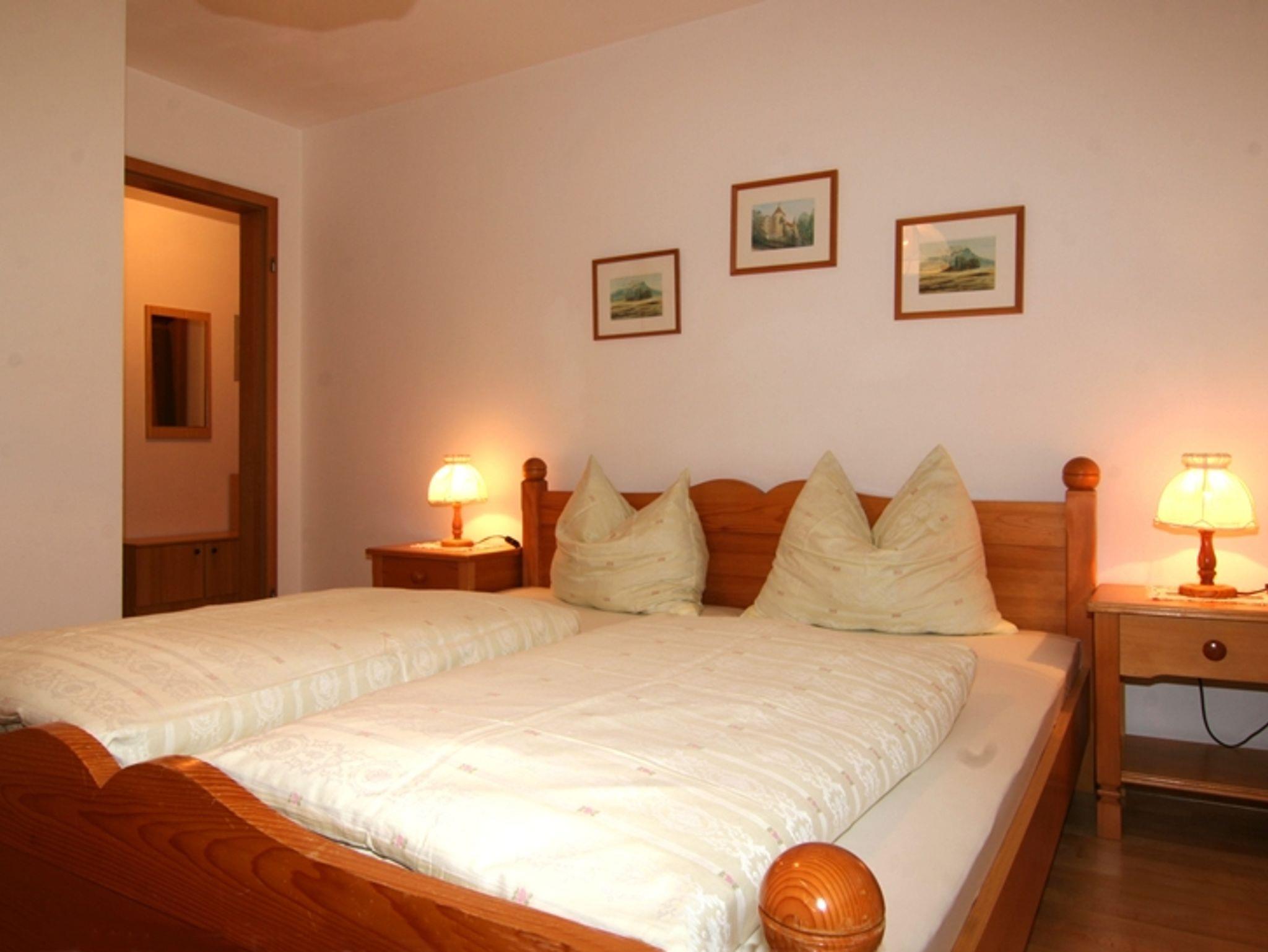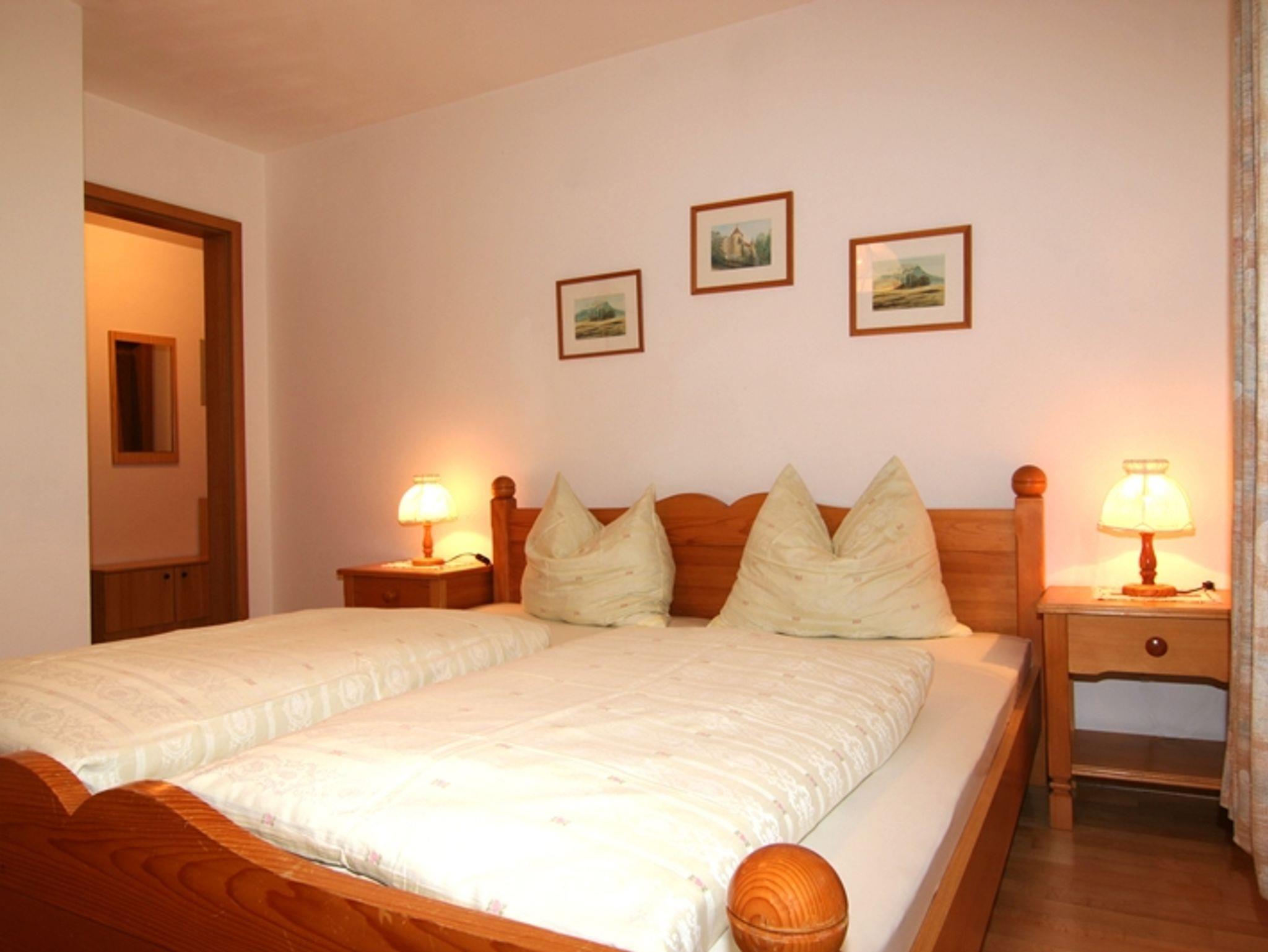 Diese Ferienwohnung hat ca. 65 m² Wohnfläche und eignet sich für eine Belegung für 2 bis 4 Personen. Sie verfügt über 1 separates Schlafzimmer sowie einen Wohnschlafraum, Küche mit Backofen, Kühlschrank und rustikaler Essecke, Bad/WC mit Handtüchern, Telefon, Radio und Kabelfernsehen. Der Balkon bietet einen fantastischen Bergblick.