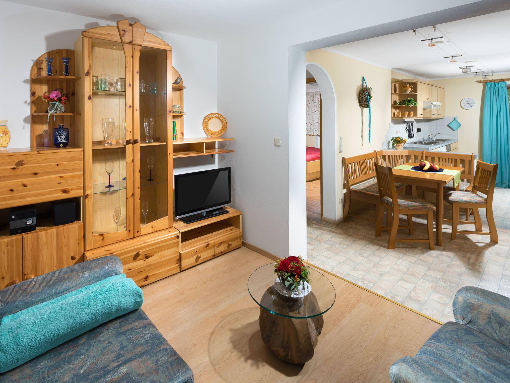 Unsere Ferienwohnung Untersberg ist 41 qm groß. Man betritt sie durch separaten Eingang von der Terrasse aus. Die Wohnküche ist mit gemütlicher Eßecke und schöner Einbauküchenzeile mit Elektrogeräten wie Toaster, Kaffeemaschine, Wasserkocher und E-Herd mit Backofen ausgestattet. Eine Fernsehecke mit Couchgarnitur und Wohnzimmerschrank mit Sat-TV ist vorhanden. Durch eine Türe betritt man das geräumige Schlafzimmer mit großem Fenster, sowie das Badezimmer mit Fenster, Dusche/WC. Unsere Ferienwohnungsanlage/unser Appartement wurde nach dem Klassifizierungssystem des Deutschen Tourismus Verbandes als Ferienwohnung/Ferienhaus mit 3 Sternen klassifiziert.