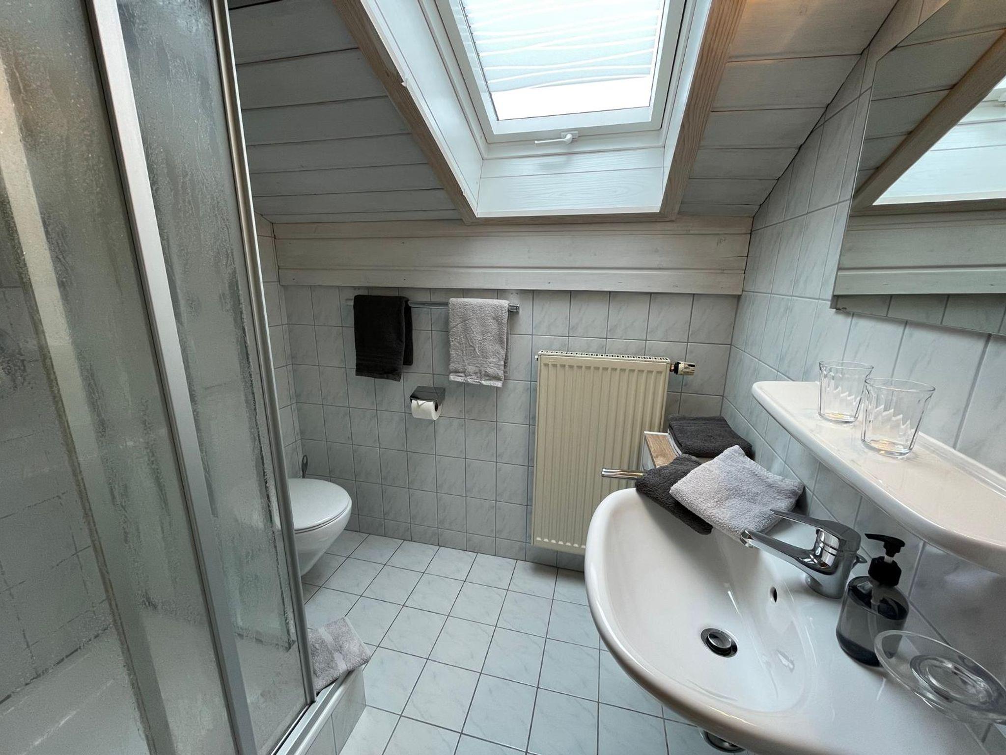 Die komfortabel eingerichtete Mansarden-Ferienwohnung verfügt über ein separates Schlafzimmer (Bettwäsche vorhanden) und eine gemütliche Wohnküche mit 4-Platten-Herd, Backofen, Kühlschrank mit Gefrierfach, Kaffeemaschine, Wasserkocher, Sitzecke, ausziehbarer Sessel und TV. Im Bad mit Dusche/WC liegen für Sie Handtücher und Fön bereit. Auf dem Balkon möblierten Balkon haben Sie einen fantastischen Blick auf die Bergwelt. Unseren Gästen stellen wir kostenloses WLAN zur Verfügung.