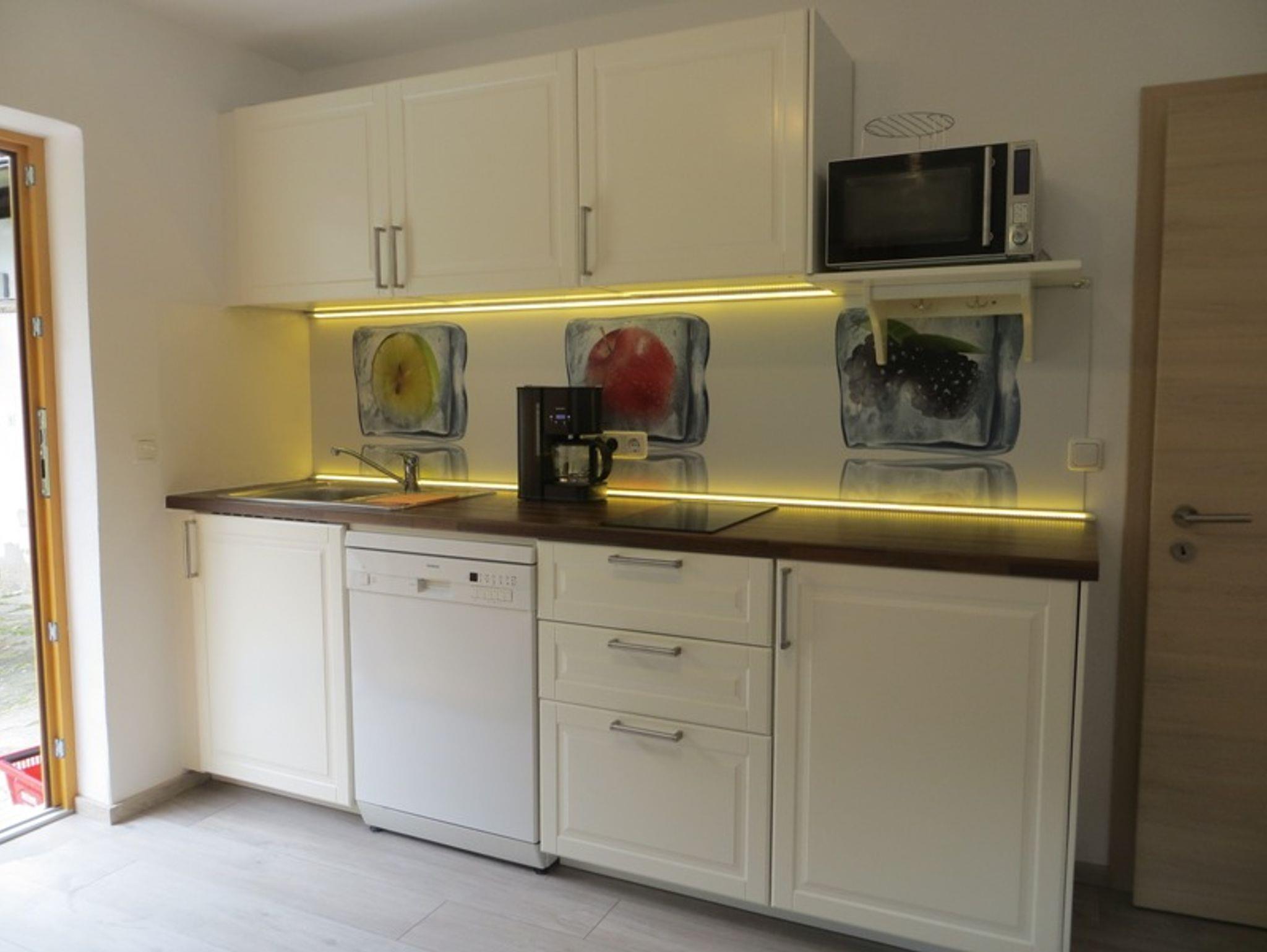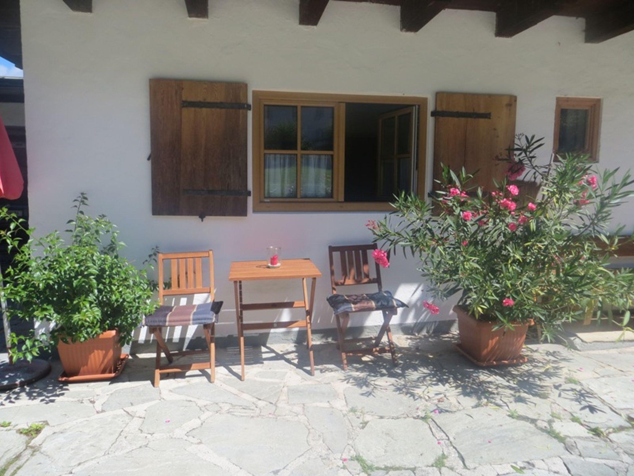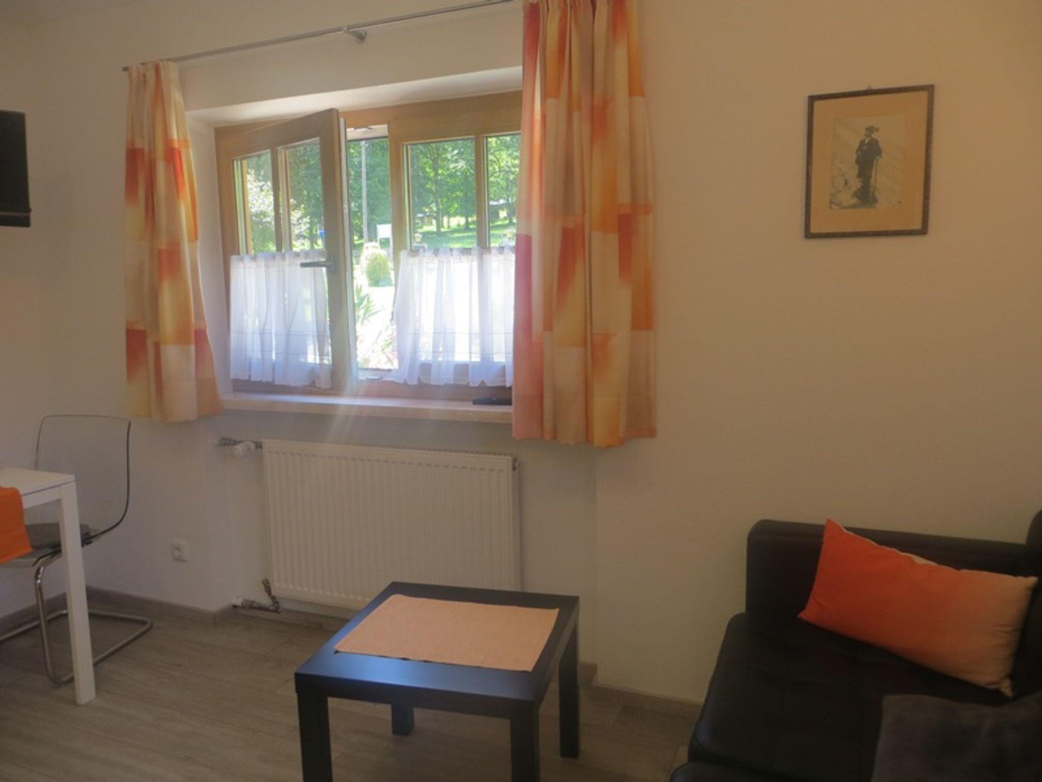 Unser neu renoviertes Apartment ?Grünstein? ist ideal für zwei Personen. Es befindet sich im Parterre und bietet eine Sitzmöglichkeit vor dem Haus und eine weitere hinter dem Haus mit Blick auf die Berge. Die Wohnung hat einen separaten Eingang. Sie ist funktional und modern eingerichtet.Die Wohnküche bietet einen Essplatz für zwei, sowie eine Couch, Flatscreen und WLAN.Die Küchenzeile ist voll ausgestattet mit Induktionsherd (2 Platten), Mikrowelle mit Grill, Wasserkocher, Kaffeemaschine, Toaster, Spülmaschine.Bad mit Badewanne, Dusche und WC, Haarfön und Handtücher stehen selbstverständlich für Sie bereit.Das separate, sehr ruhig gelegene Schlafzimmer ist mit Doppelbett, Kleiderschrank und Ganzkörperspiegel sowie einer Kommode eingerichtet.Unsere Wohnung ist eine Nichtraucher-Wohnung. Wir sind Hundebesitzer und nehmen leider keine Haustiere auf. Bitte beachten Sie, dass sich auf dem Grundstück ein ungesicherter Gartenteich befindet.