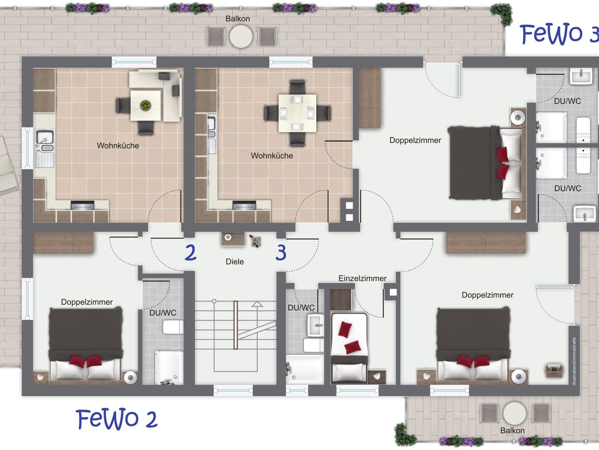 Voll ausgestattete Ferienwohnung bietet viel Platz zum Ausspannen. Ob auf der Terrasse, dem Balkon oder in der heimeligen Sitzecke - hier lassen sich prima Ausflugspläne schmieden. All unsere Ferienwohnungen sind mit Dusche/WC, Sat-TV, Balkon oder Terrasse ausgestattet.