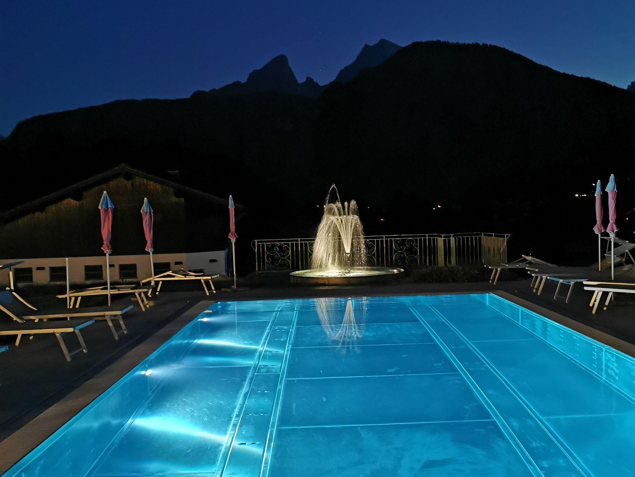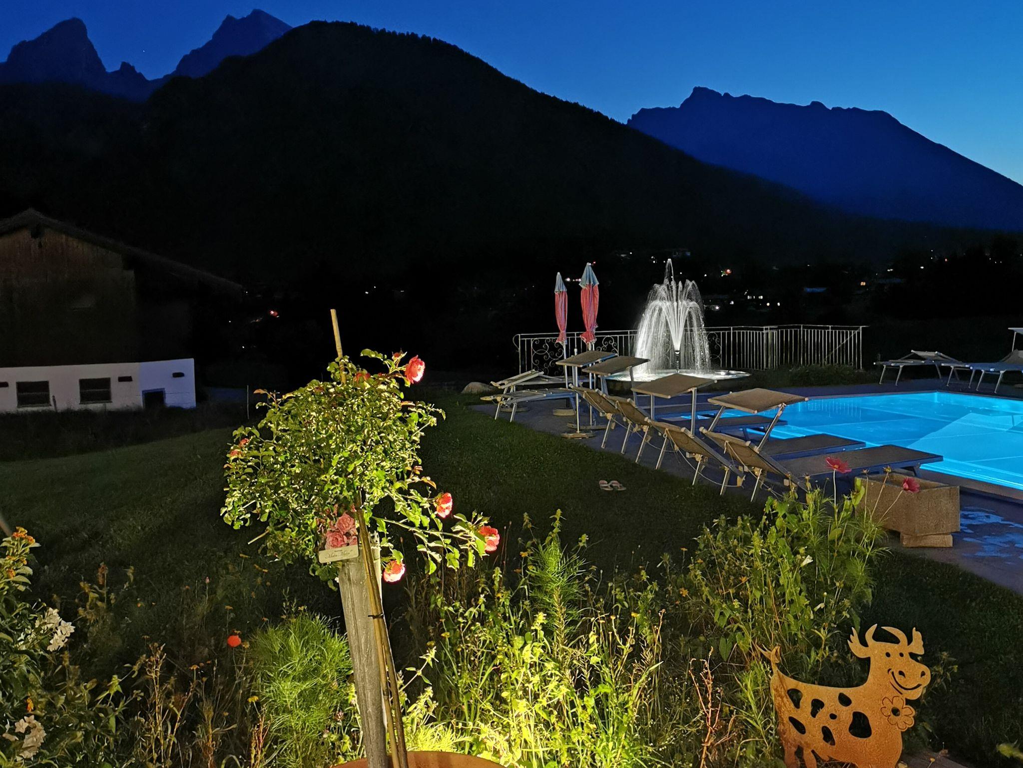 Mit Blick auf die gesamte Gebirgskette rundherum finden Sie unser Haus in sonniger, ruhiger jedoch zentraler Lage. Die Zimmer sind alle mit Tisch und Stühle, Dusche/WC, Balkon, Zentralheizung und TV ausgestattet. Für Ruhe und Entspannung sorgt eine große Liegewiese und eine gemütliche Terrasse. Für geselliges Zusammensitzen haben wir einen großen Aufenthaltsraum (Frühstücksraum). Wir bieten ein reichhaltiges Frühstücksbuffet, was im Preis mit enthalten ist. Eigene Almen am Jenner. Nähere Informationen über unser Haus und unsere Almen entnehmen Sie bitte aus unserer Internetseite. Außenschwimmbad beheizt vorhanden von 01.05. - ca. Mitte Oktober je nach Wetterlage.