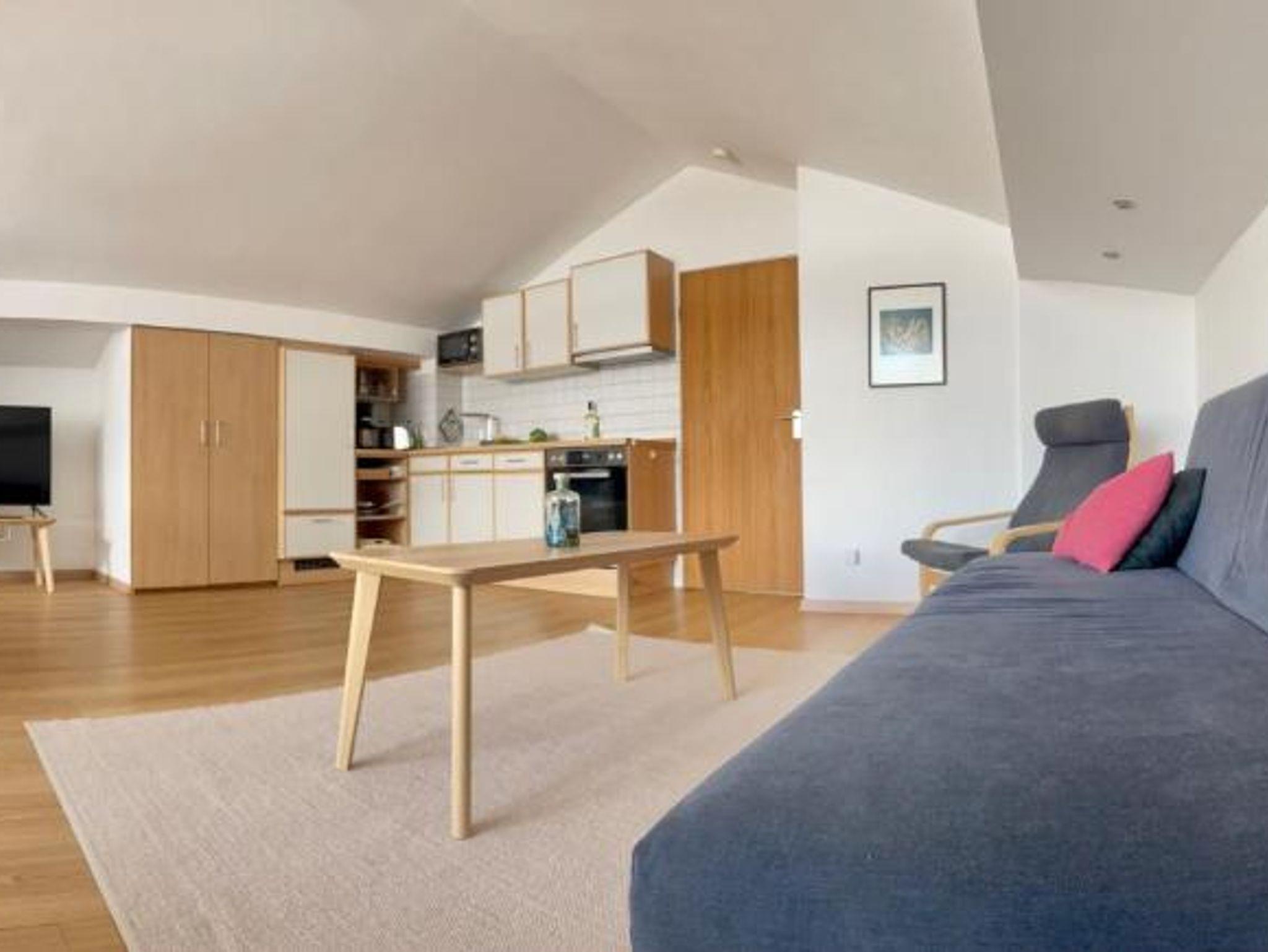 Diese Ferienwohnung hat 46 qm und liegt im 2. Obergeschoß unter dem Dach nach Westen mit raumhoher Fensterfront. Die Wohnung wurde Ende 2018 komplett renoviert: neues Bad, neuer Parkettboden, neue Möbel. Sie besteht aus Wohnraum mit extra großer Schlafcouch (180x 200) und einem seperatem Schlafzimmer. Ausgestattet mit Küchenzeile, Geschirrspüler, Herd mit 4 Kochplatten, Backofen, Dunstabzug, Kühlschrank mit Gefrierfach und diverse Küchengeräte. Seperates WC und Bad mit Tageslicht (Deckenoberlicht). Der geräumige Westbalkon mit Sitzgarnitur und Liegestühlen ist ein idealer Platz zum Ausruhen, wenn man müde von diversen Ausflügen zurückkommt.