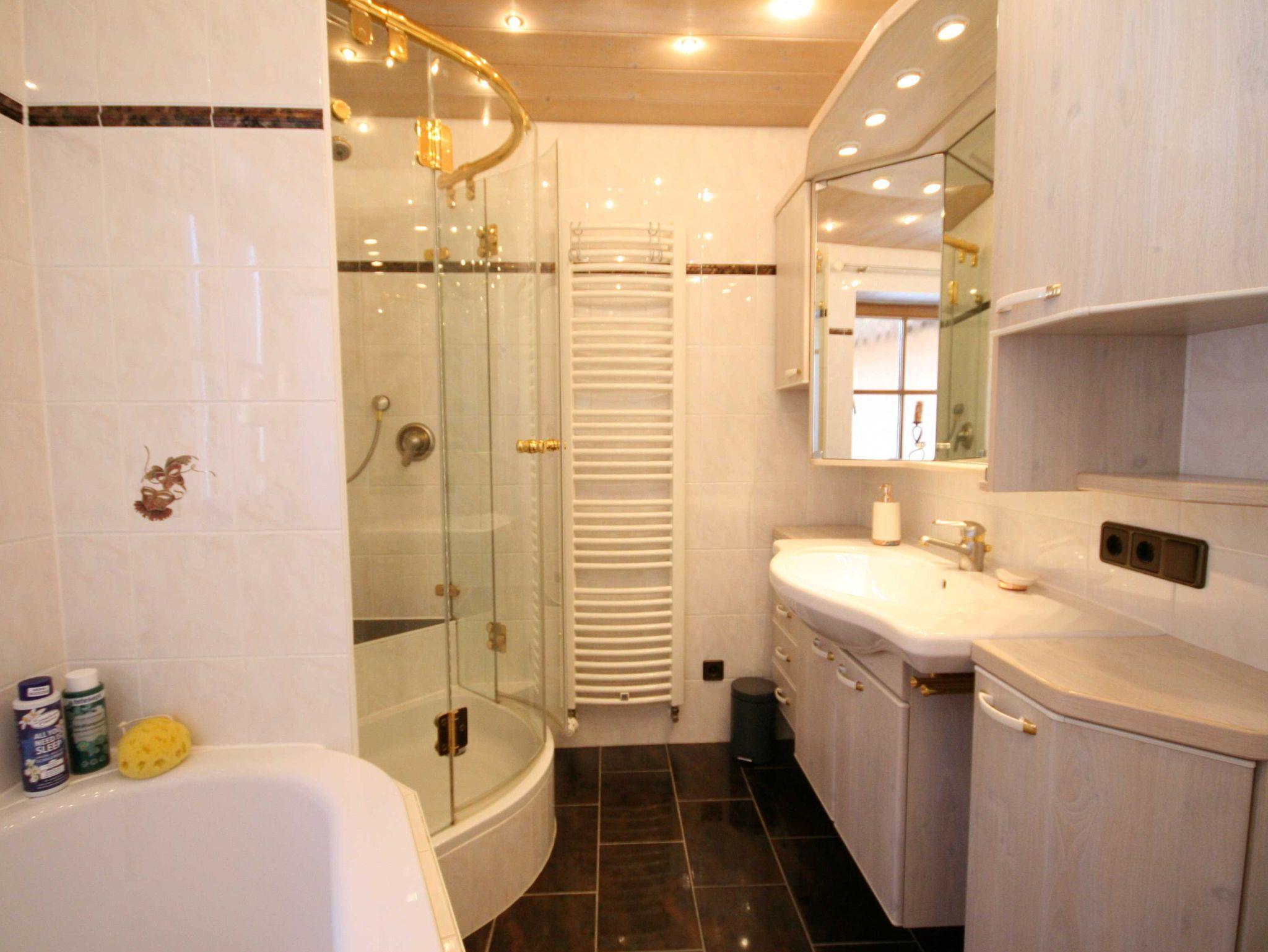 Das geräumige Badezimmer ist mit sparater Dusche und Eckbadewanne ausgestattet.