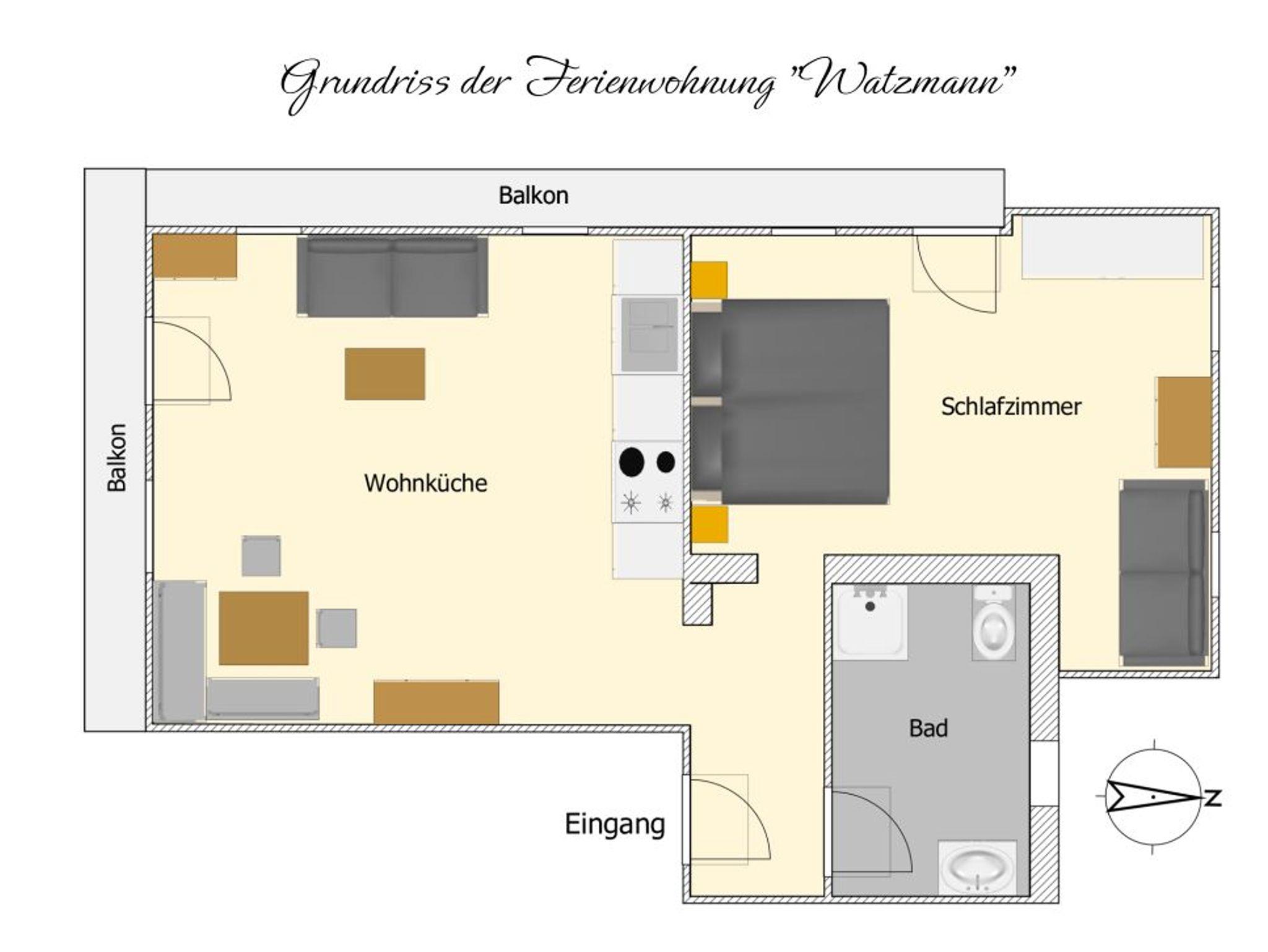 Ferienwohnungen Schwöblehen, Ferienwohnung Watzmann 68 qm, für 2 Personen, Balkon, 1 Schlafzimmer