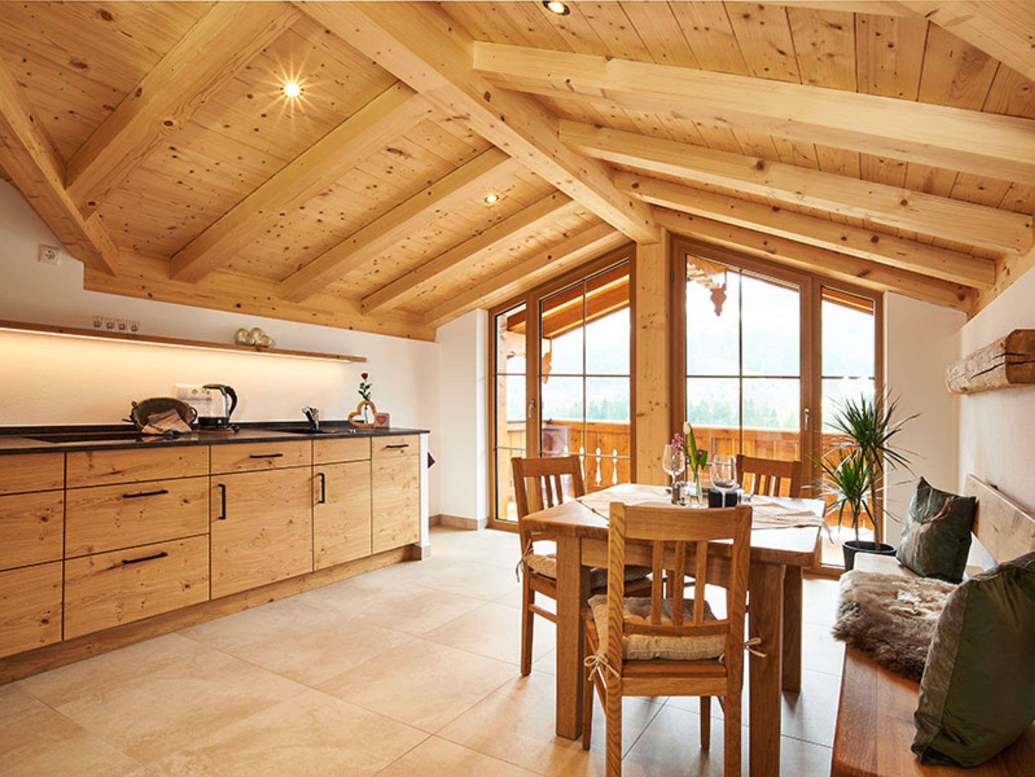 Wunderschöne Dachgeschoss-Ferienwohnung im Neubau mit Sichtdachstuhl. Ein großer Süd-und Ostbalkon bietet Ihnen einen schönen Blick auf die Berge. In der Dachgaube befindet sich eine im Landhausstil eingerichtete Küche. Das Schlafzimmer verfügt über ein 1,80x2m Bett. Das große Wohnzimmer ist mit einer Schlafcouch und Smart TV ausgestattet. Das vollausgestatte Bad mit Dusche, Badewanne, Waschmaschine, WC ist modern eingerichtet. Kostenloses W-Lan steht unseren Gästen zur Verfügung.Kinder werden in der Ferienwohnung Königssee gerne ab 14 Jahre beherbergt.