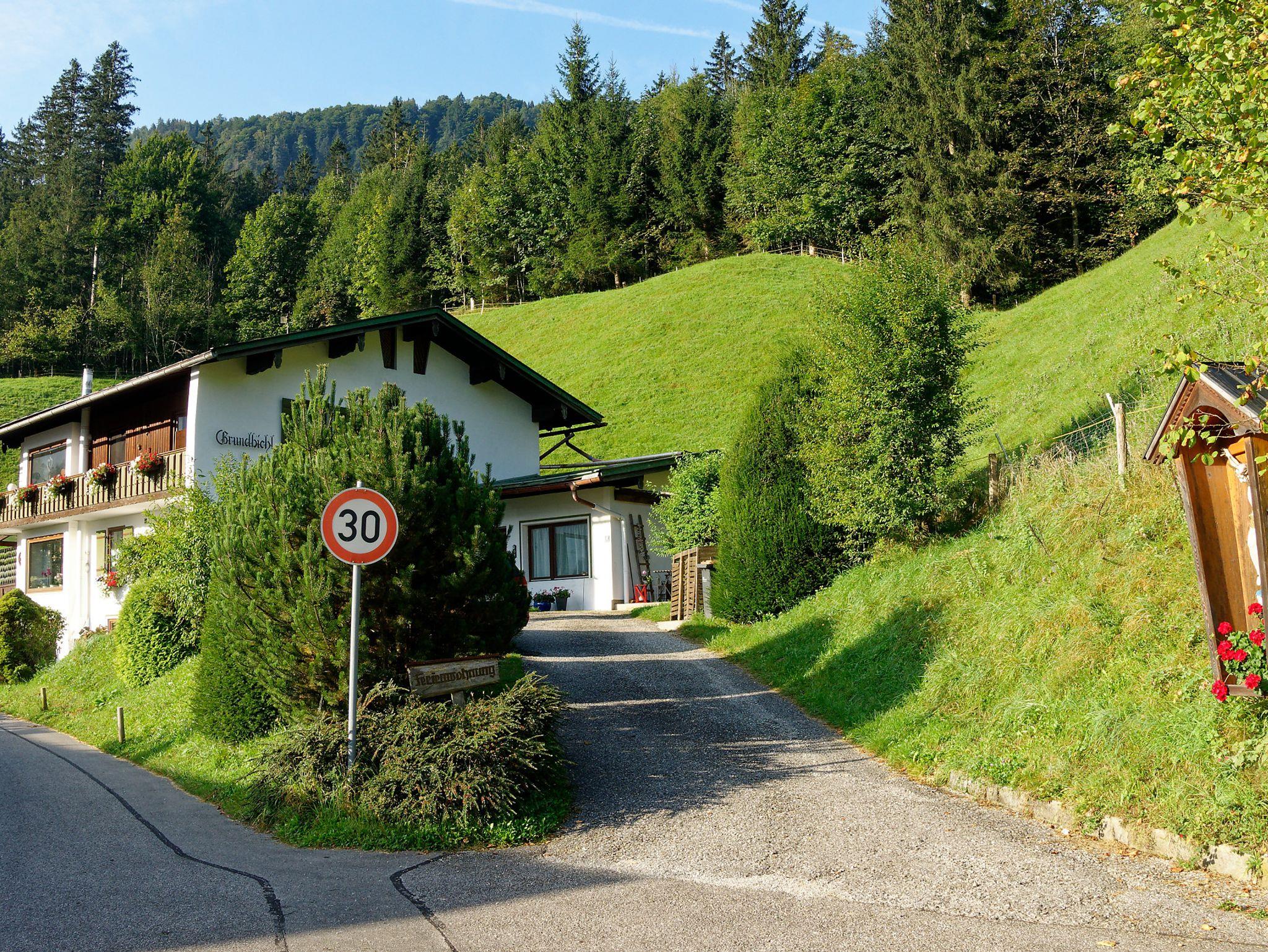 Die Ferienwohnung befindet sich nur 500 m vom Königssee entfernt. Das Haus liegt ruhig, aber zentral an einer wenig befahrenen Nebenstraße. Die Ferienwohnung befindet sich mit separatem Zugang in einem eigenen Anbau am Haus Grundbichl. Von der FeWo mit der kleinen Terrasse hat man einen herrlichen Blick auf die umliegenden Berchtesgadener Alpen. Direkt vor dem Haus beginnen die Wanderwege auf den Grünstein und Watzmann, nicht weit entfernt liegt das Göllgebiet, Hagengebirge oder Steineres Meer. In weniger als 10 Minuten erreichen Sie zu Fuß den Königssee mit der Möglichkeit mit dem Schiff über den See zu fahren. Mehr als 10 Gaststätten sind fußläufig in weniger als 15 Min erreichbar. Auch die international bekannte Bob- und Rodelbahn und die Jennerbahn (Seilbahn auf 1800 m mit herrlichen Ausblicken) sind zu Fuß gut erreichbar. Mit dem Auto oder öffentlichen Verkehrsmitteln (halbstündlich) erreichen Sie in kurzer Zeit Berchtesgaden, das Bergsteigerdorf Ramsau oder die anderen zahlreichen Ausflugsziele des Berchtesgadener Landes. Auch die Nachbarstädte wie Bad Reichenhall oder Salzburg, mit ihren zahlreichen kulturellen Angeboten erreichen Sie nach nur ca. 30 Auto min.