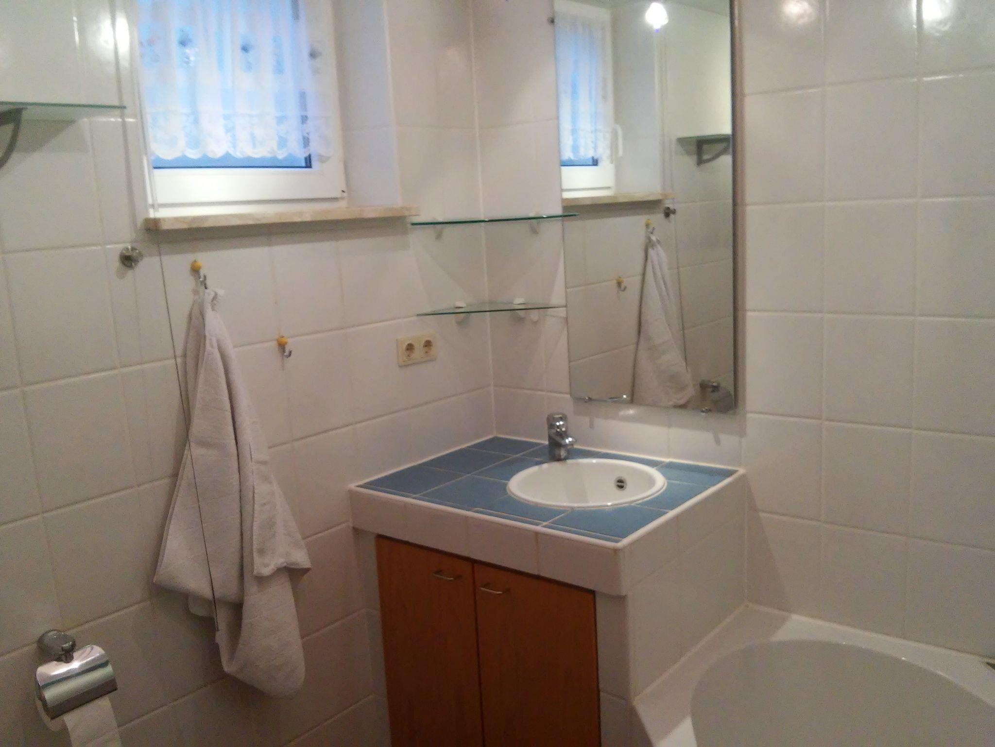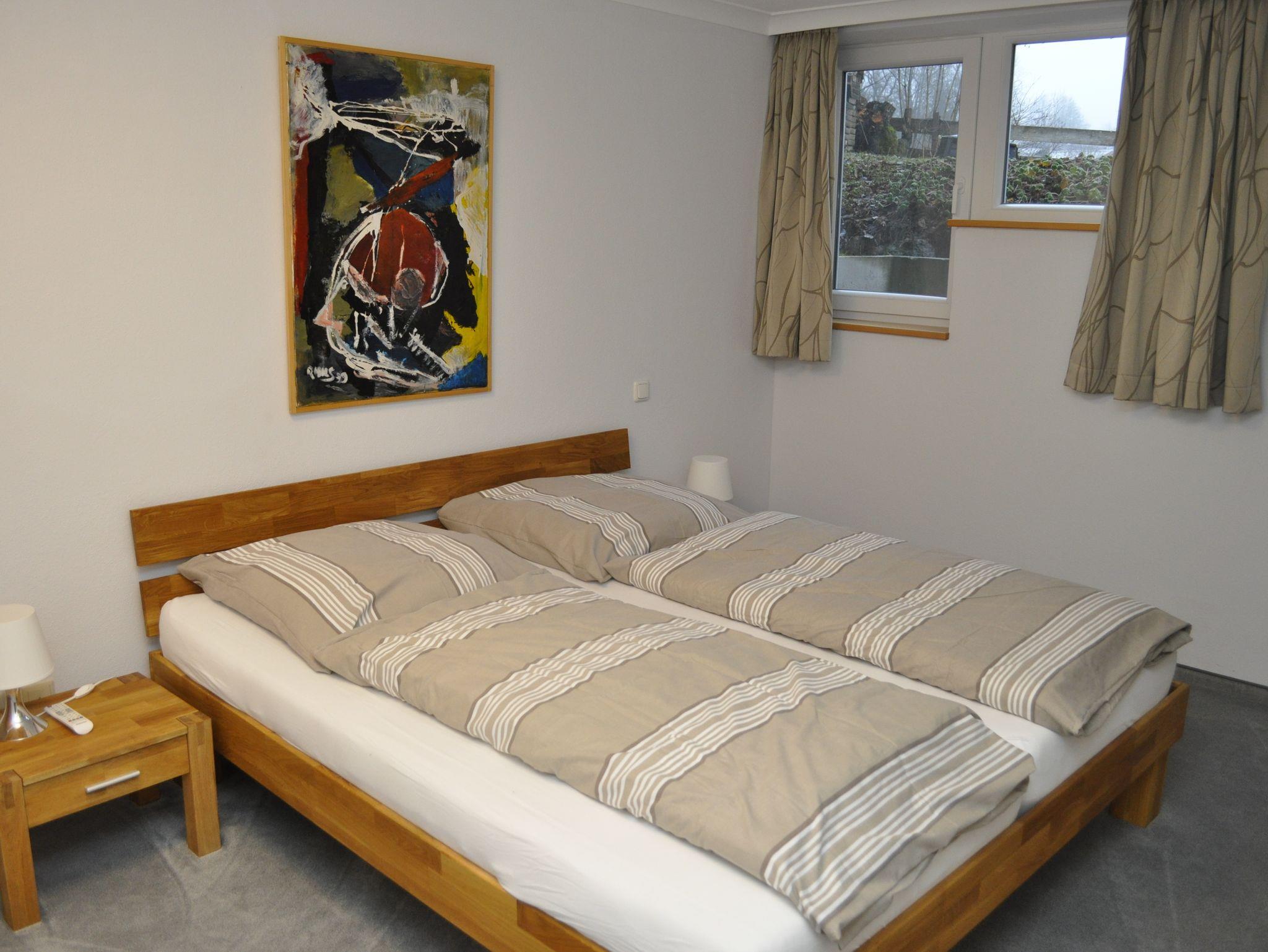 Unser Ferienhaus bietet Ihnen zwei gemütliche Schlafzimmer im Souterrain, jedes mit Platz für zwei Personen. Sie finden dort auch ein Badezimmer mit Badewanne und WC sowie einen praktischen Wäscheraum mit Waschmaschine und Trockner.
