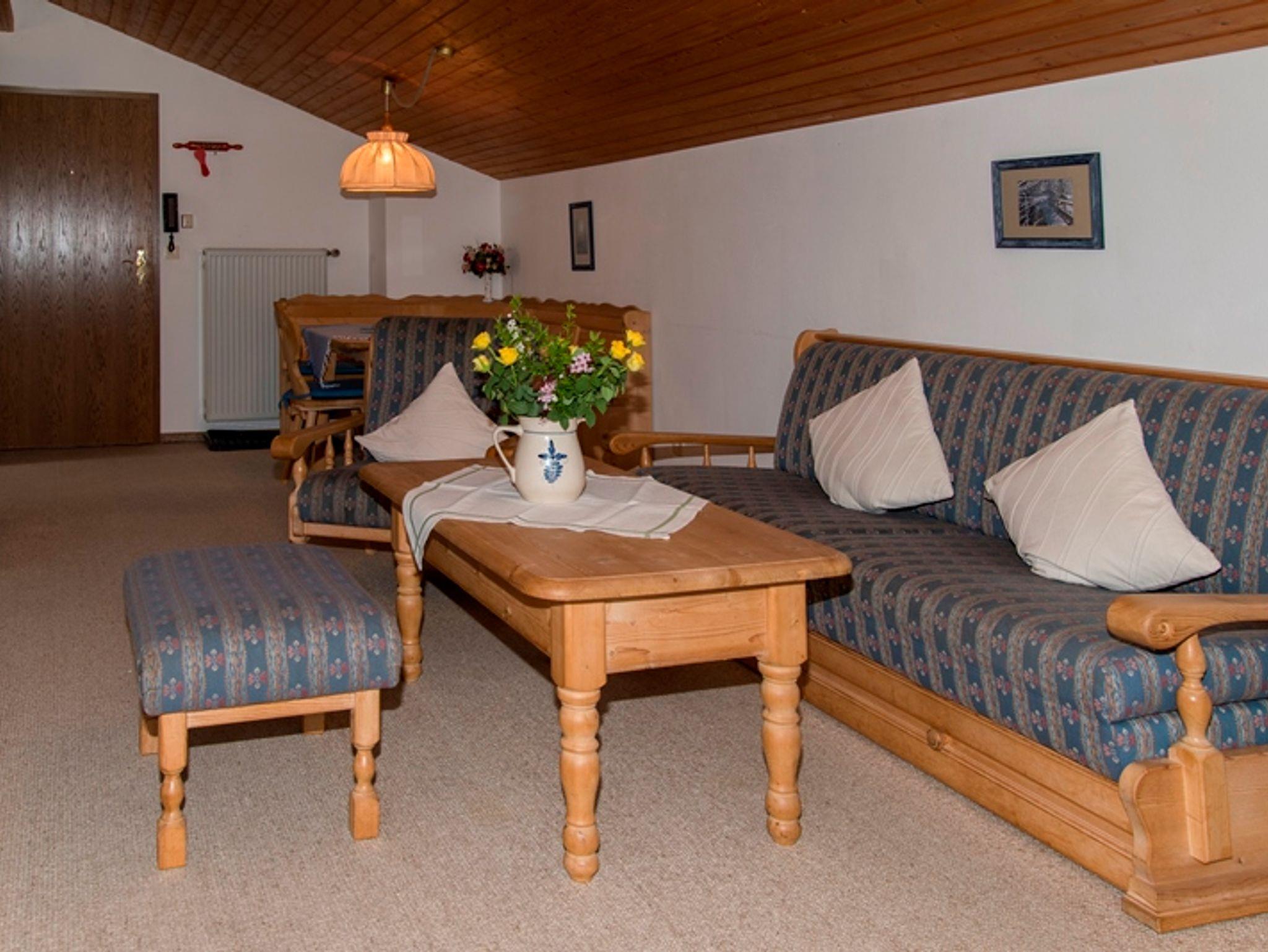 Die Ferienwohnung besitzt ein großes Schlafzimmer, ein Wohnzimmer mit ausziehbarer Doppelbettcouch, Küche mit Essecke, Kabel-TV, Bad mit WC und einem Ost-Balkon mit traumhaften Bergpanorama.