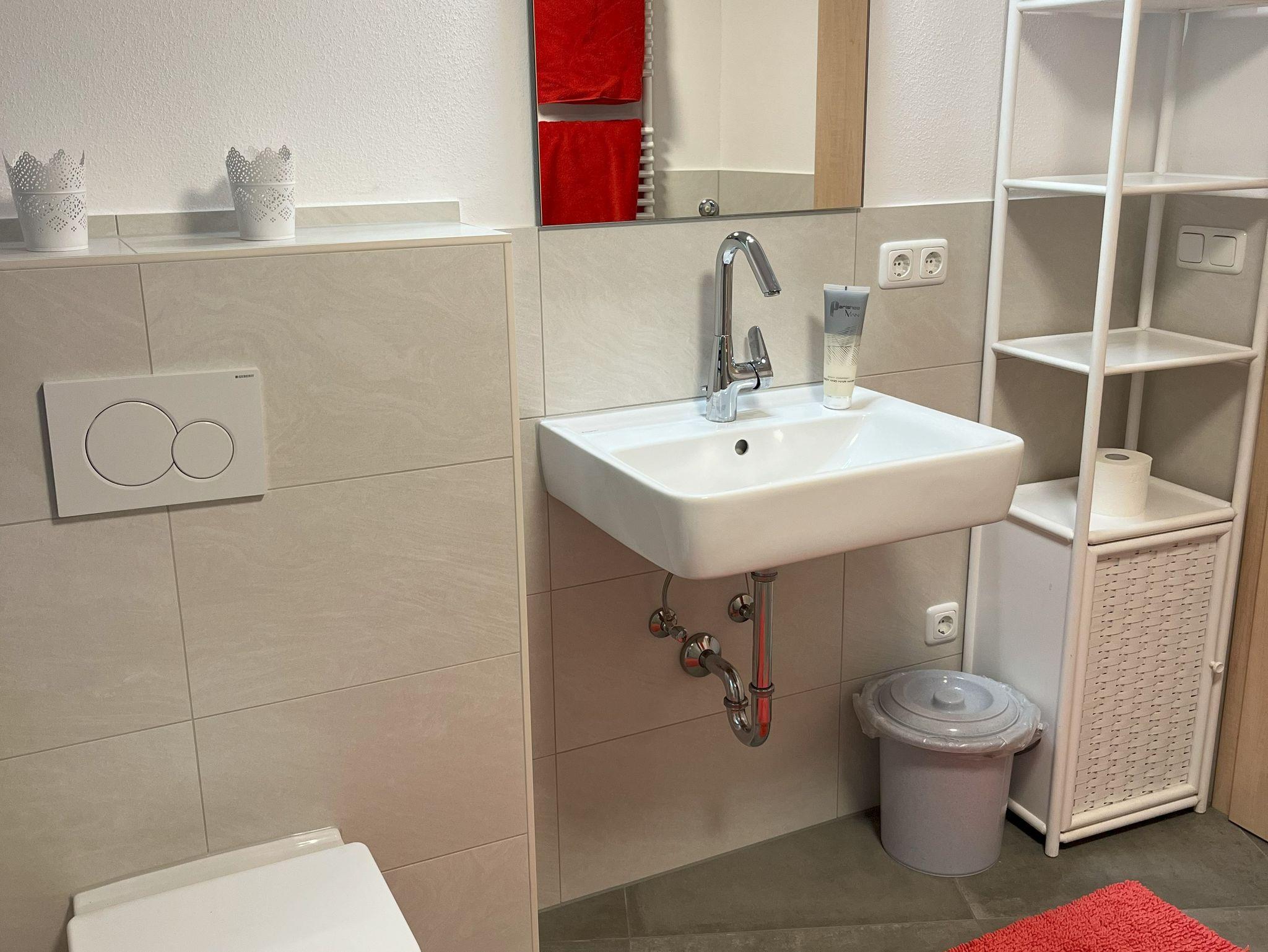 Die großzügige Wohnung bietet Platz auf 70 qm und verfügt über ein separates Schlafzimmer, Wohnzimmer mit Doppelbettcouch, TV, komplett eingerichteter Küche, div. elektronischer Geräte (Toaster, Kaffeemaschine, Wasserkocher), Bad mit separatem WC und eigenem Hauseingang sowie einer Terrasse mit Gartenmöbel.