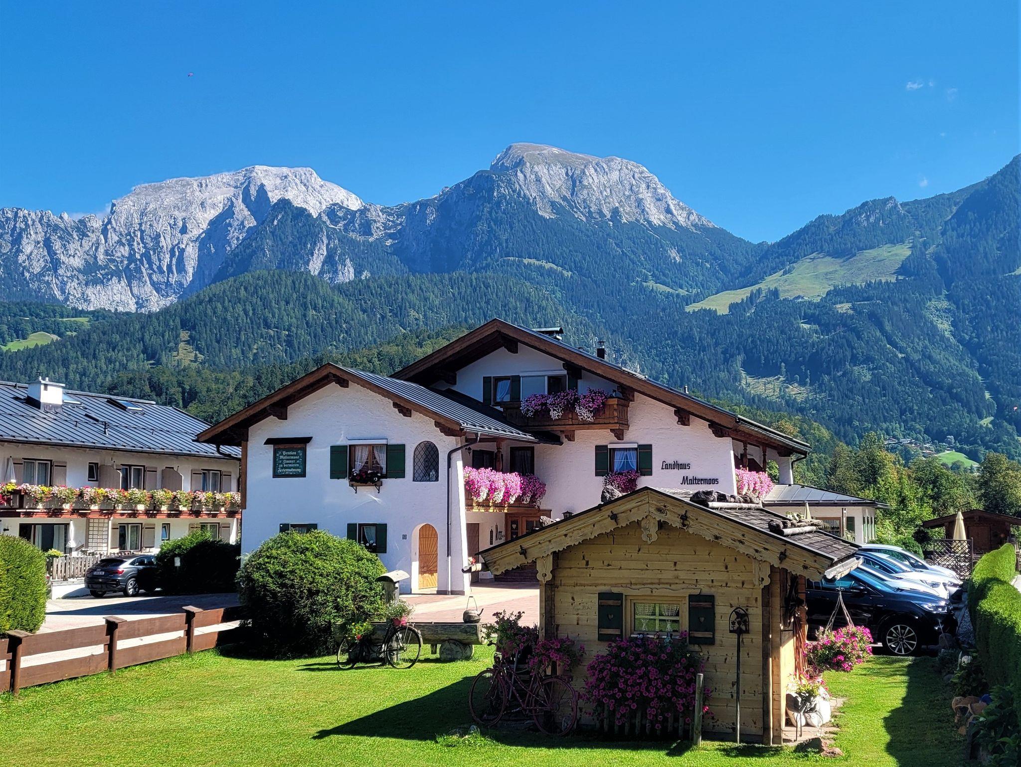 Unser Haus liegt ruhig, sonnig und doch zentral. Die Wohnungen sind mit viel Holz im bayerischen Stil eingerichtet und bieten Platz für 2 Personen. Genießen Sie die ruhige Lage und ein herrliches Bergpanorama auf dem Balkon oder unserer Terrasse. Zum Entspannen steht Ihnen eine Sauna mit Ruheraum, ein Infrarotsessel und Fitnessgeräte zur Verfügung. In wenigen Gehminuten erreichen Sie die Tourist-Information (Haus des Gastes), das Gradierwerk mit Kneippanlage und viele Gaststätten. In unmittelbarer Nähe befindet sich die Bushaltestelle. Nach einer kurzen Gehzeit von ca. 20 Minuten erreichen Sie den Königssee sowie die Jennerbahn. Im Winter ist auch die Langlaufloipe zur Fuß erreichbar. Gerne stehen wir Ihnen natürlich persönlich mit Ratschlägen für Ihre Aktivitäten zur Verfügung.