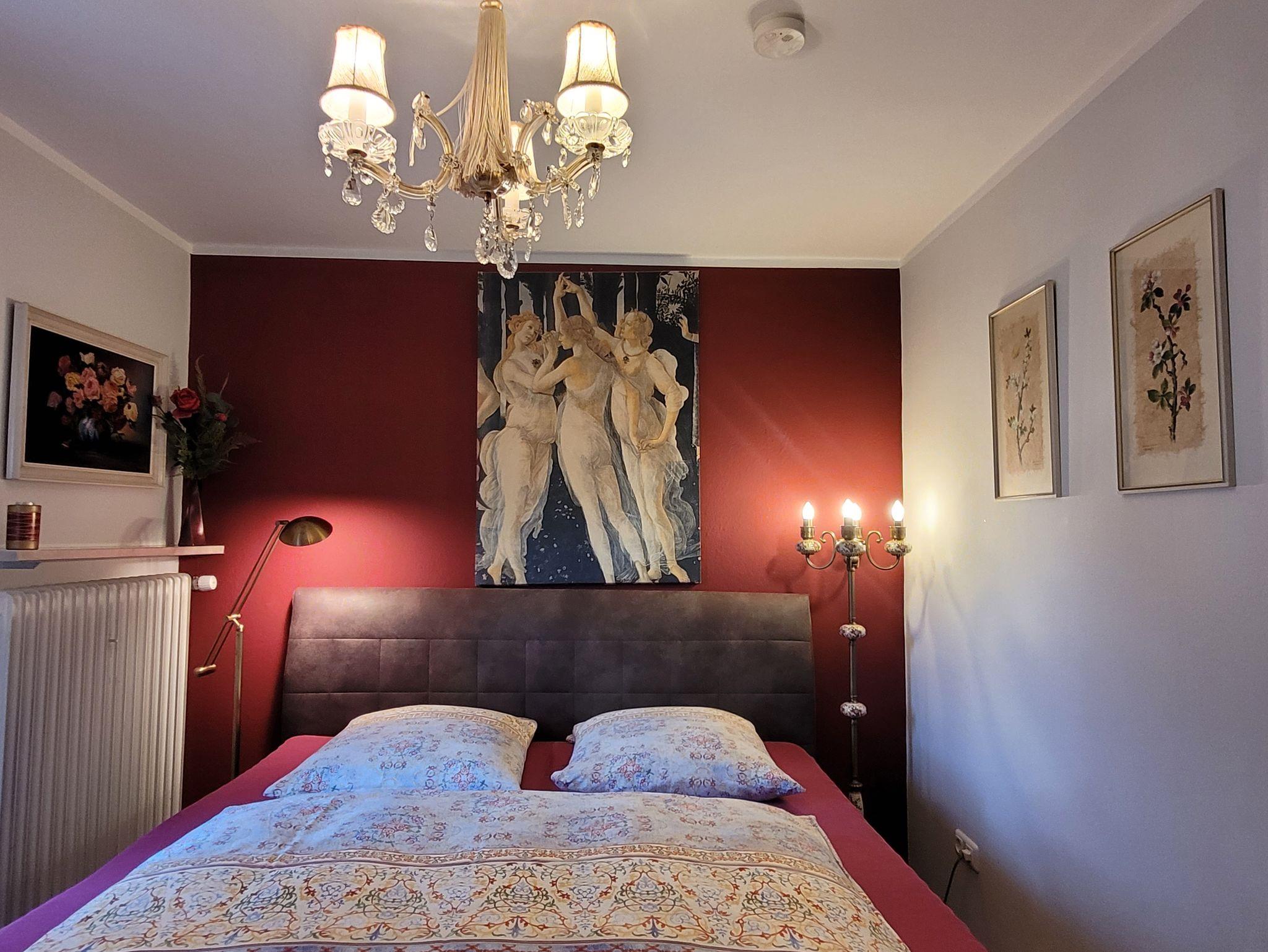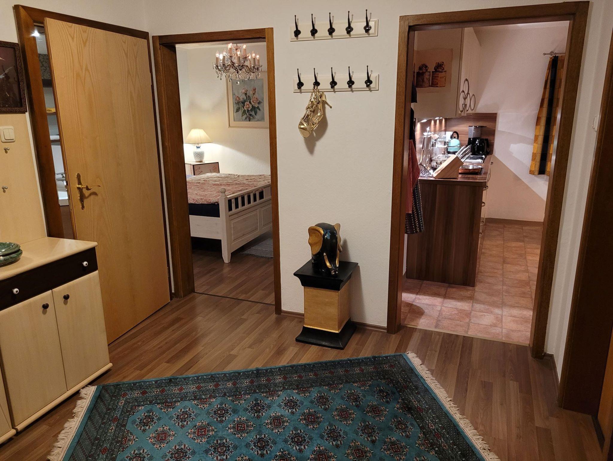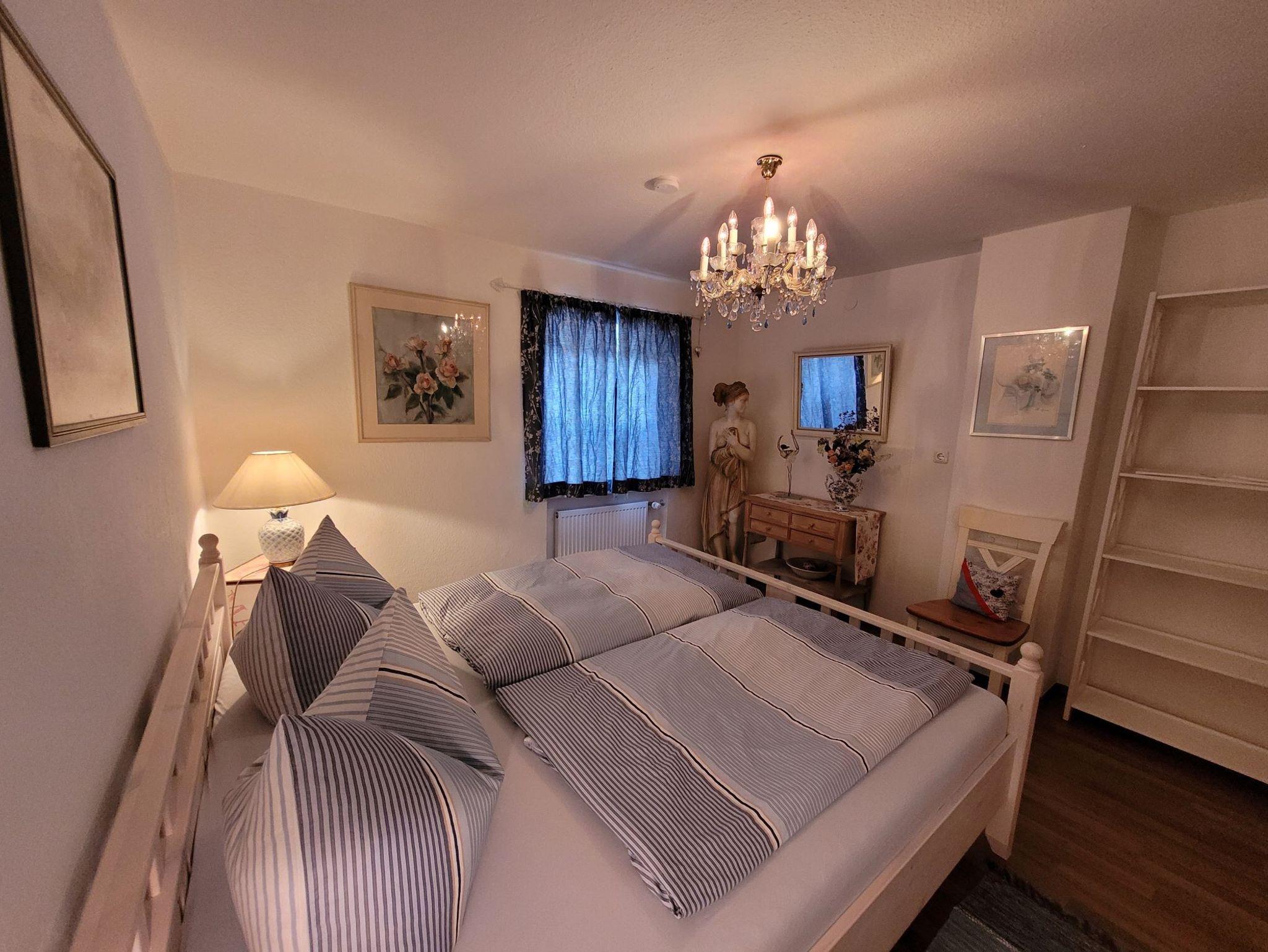 Die moderne, liebevoll eingerichtete Ferienwohnung mit 114 qm Wohnfläche im Erdgeschoss bietet 3 separate Schlafzimmer, eine geräumige Wohnküche mit 4-Platten-Ceranfeld, Backofen, Mikrowelle, Kühlschrank, separates Eis-/Kühlfach, Geschirrspülmaschine, Kaffeemaschine, Wasserkocher, Toaster, genügend hochwertiges Geschirr, Besteck und Gläser. Eine Grundausstattung an verschiedenen Gewürzen, sowie Salz + Pfeffer sind vorhanden. Das Bad ist ausgestattet mit Badewanne inklusive Dusche, WC, Waschbecken, Föhn, Kosmetikspiegel, Toiletten-Papier, Bade- und Handtüchern.