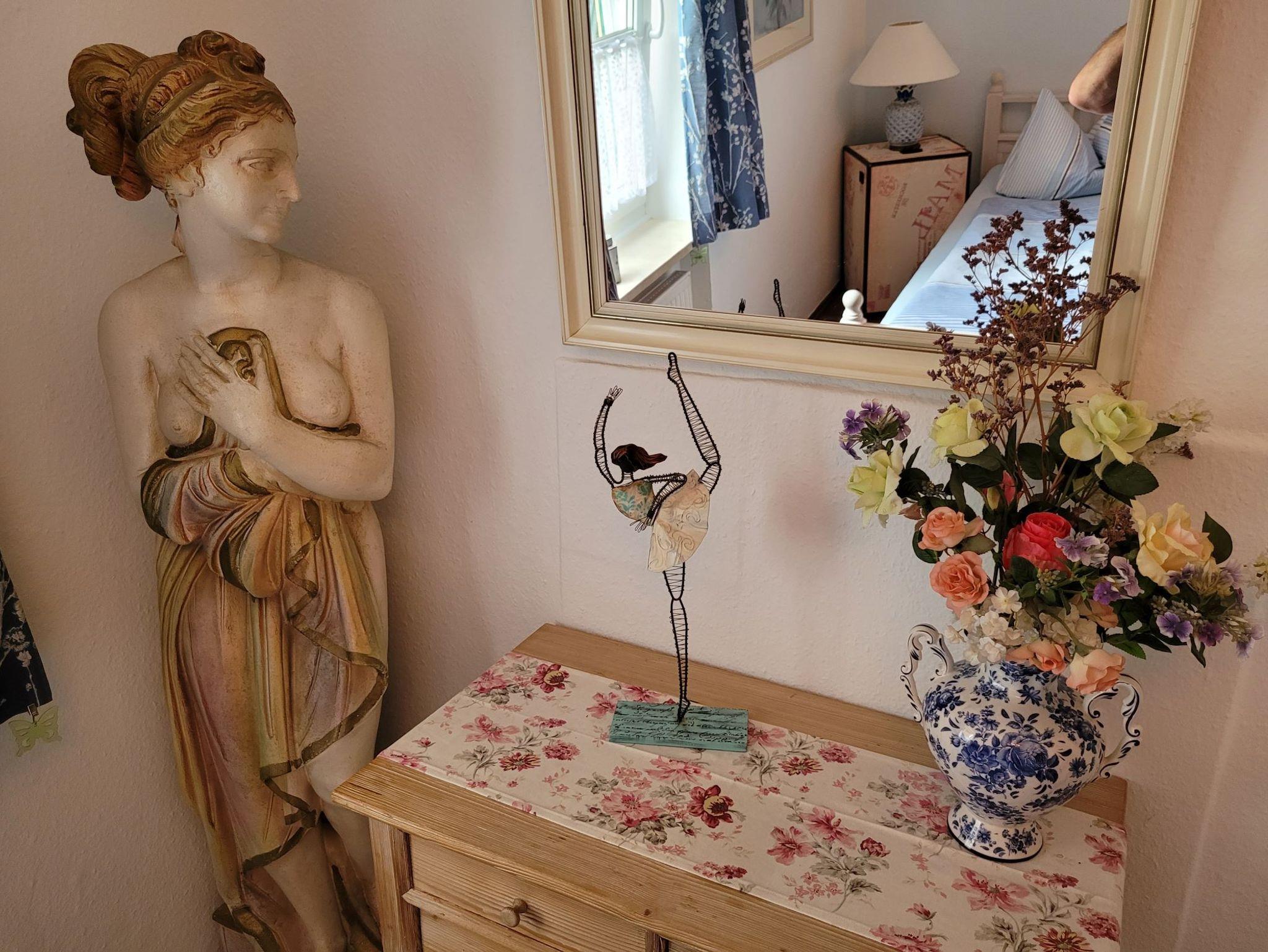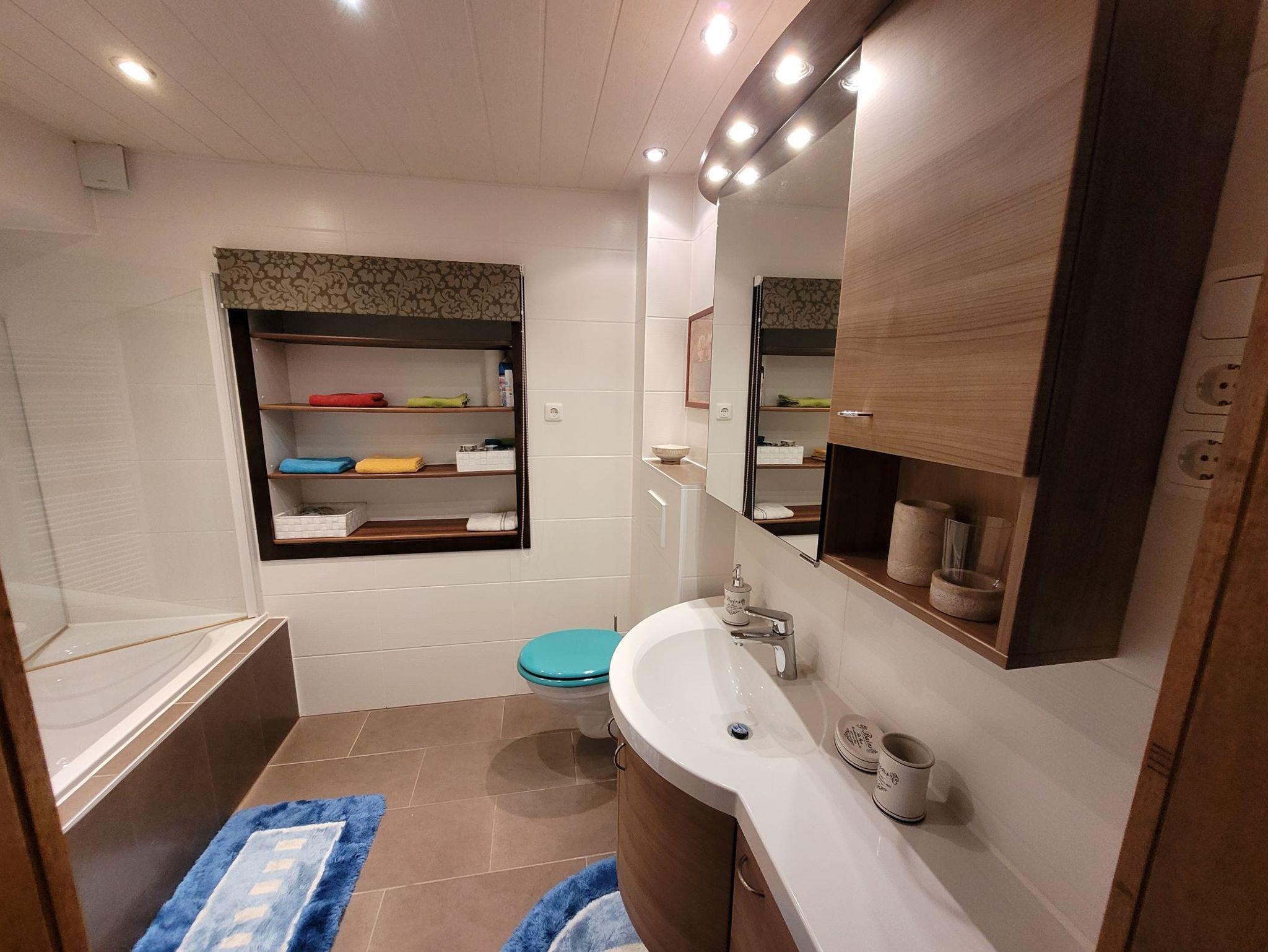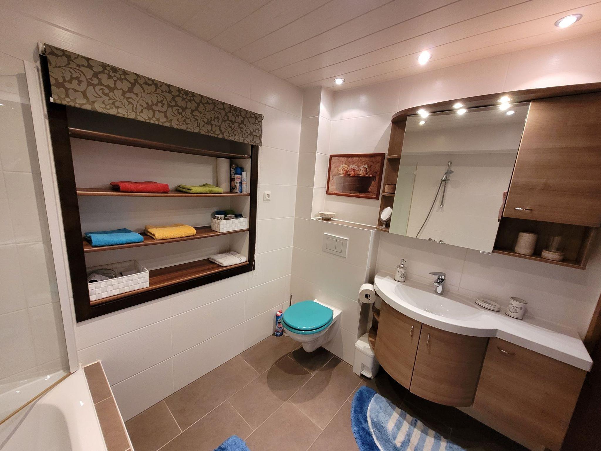 Die moderne, liebevoll eingerichtete Ferienwohnung mit 114 qm Wohnfläche im Erdgeschoss bietet 3 separate Schlafzimmer, eine geräumige Wohnküche mit 4-Platten-Ceranfeld, Backofen, Mikrowelle, Kühlschrank, separates Eis-/Kühlfach, Geschirrspülmaschine, Kaffeemaschine, Wasserkocher, Toaster, genügend hochwertiges Geschirr, Besteck und Gläser. Eine Grundausstattung an verschiedenen Gewürzen, sowie Salz + Pfeffer sind vorhanden. Das Bad ist ausgestattet mit Badewanne inklusive Dusche, WC, Waschbecken, Föhn, Kosmetikspiegel, Toiletten-Papier, Bade- und Handtüchern.