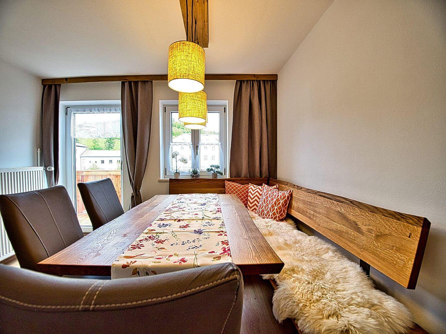 Die Ferienwohnung am Bruckenstüberl verbindet alpinen Charme mit modernem Wohnkomfort und erstreckt sich über zwei Etagen mit insgesamt 124?m² Wohnfläche – ideal für bis zu sechs Erwachsene und zwei Kinder. Alte und neue Holzelemente prägen das gesamte Interieur und verleihen der Wohnung eine warme, einladende Atmosphäre, die den Charakter des Hauses auf authentische Weise widerspiegelt.