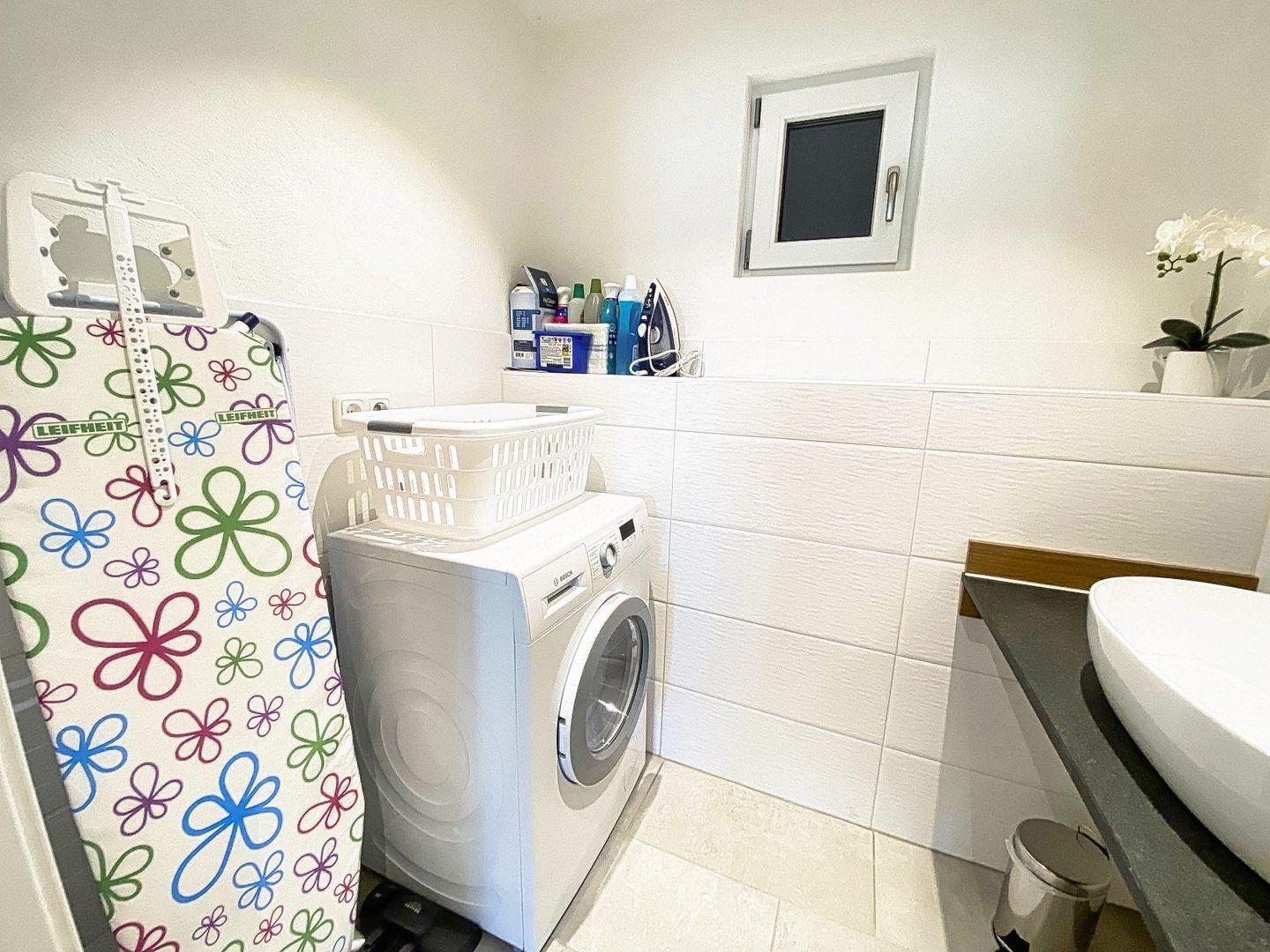 Im ersten Obergeschoss befinden sich zwei Schlafzimmer, sowie ein Badezimmer, ein separates WC und ein kleiner Waschraum mit Waschmaschine. Über eine innenliegende Treppe erreichen Sie die obere Etage, in der sich ein weiteres Schlafzimmer mit zwei Einzelbetten, ein separates WC sowie ein weiteres Zimmer befinden. Letzteres ist aufgrund seiner begrenzten Raumgröße ausschließlich für Kinder geeignet.