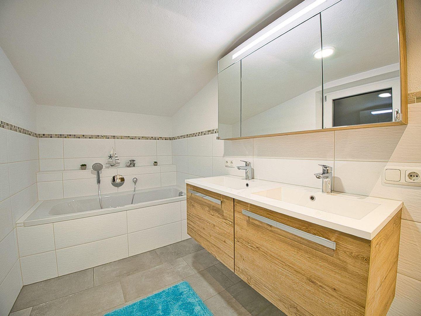 Die Wohnung verfügt über einen eigenen Eingang, über eine Treppe gelangt man zu den beiden Wohnetagen.