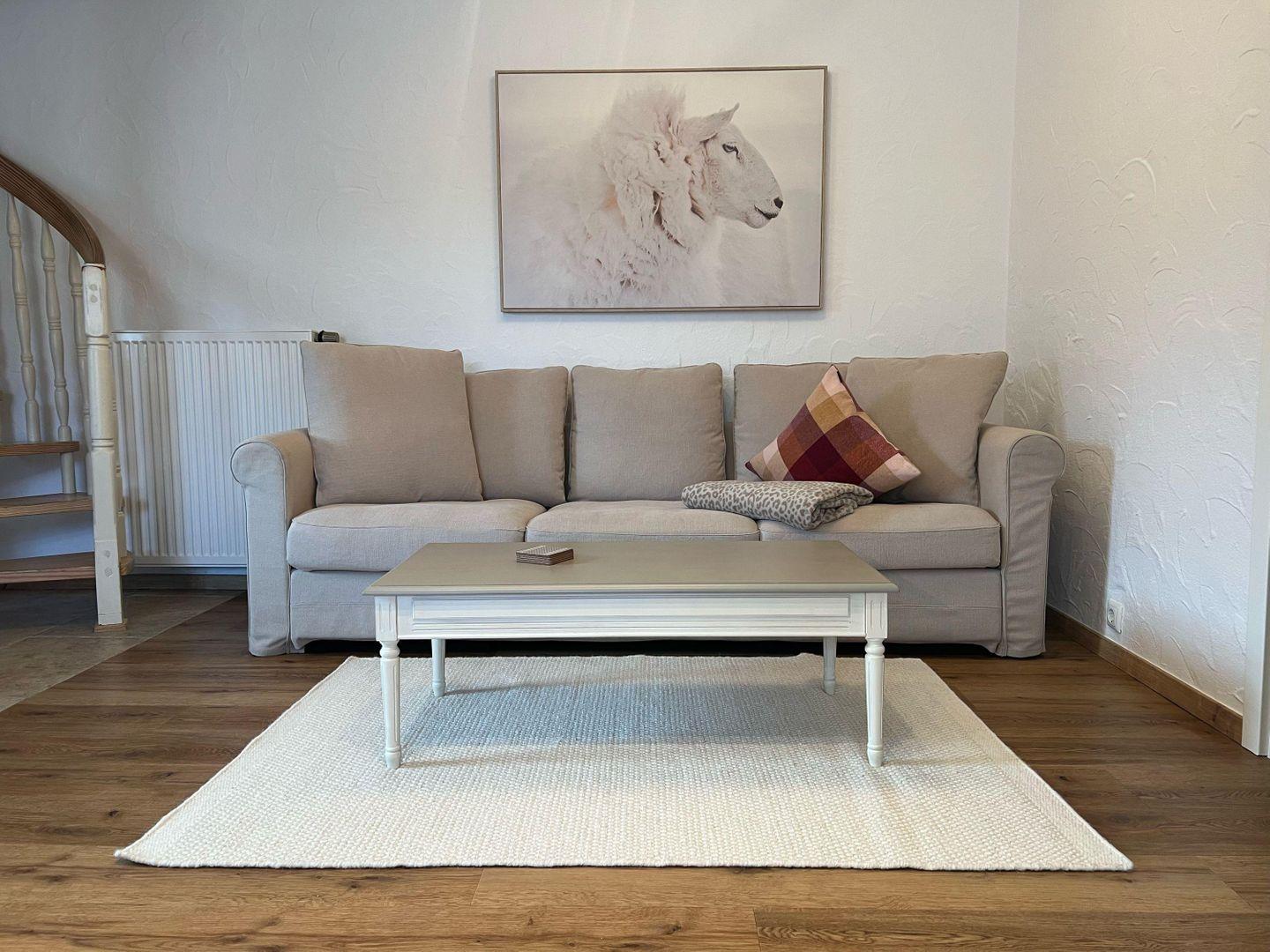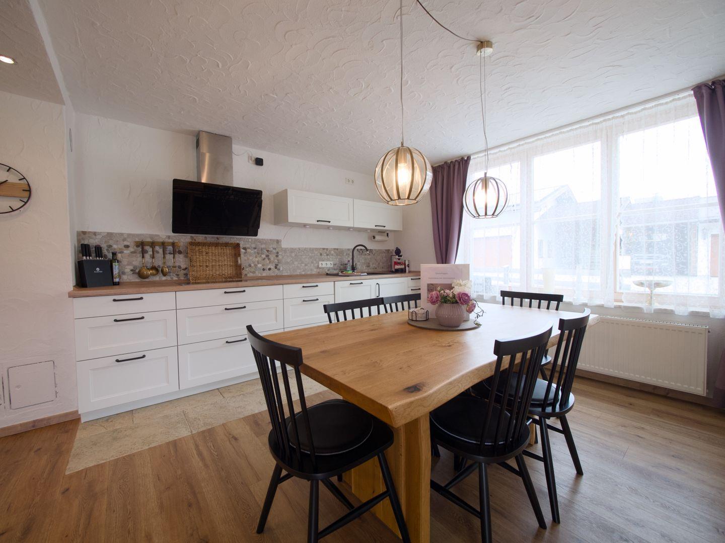 Im Erdgeschoss befindet sich der offene Wohn- und Essbereich mit gemütlichem Sofa, Fernseher, Radio und einem großen Esstisch für bis zu sechs Personen. Die offene Küche ist voll ausgestattet – ideal für gemeinsames Kochen. ?Ebenfalls im Erdgeschoss: ein Schlafzimmer mit eigenem Bad und Toilette.
