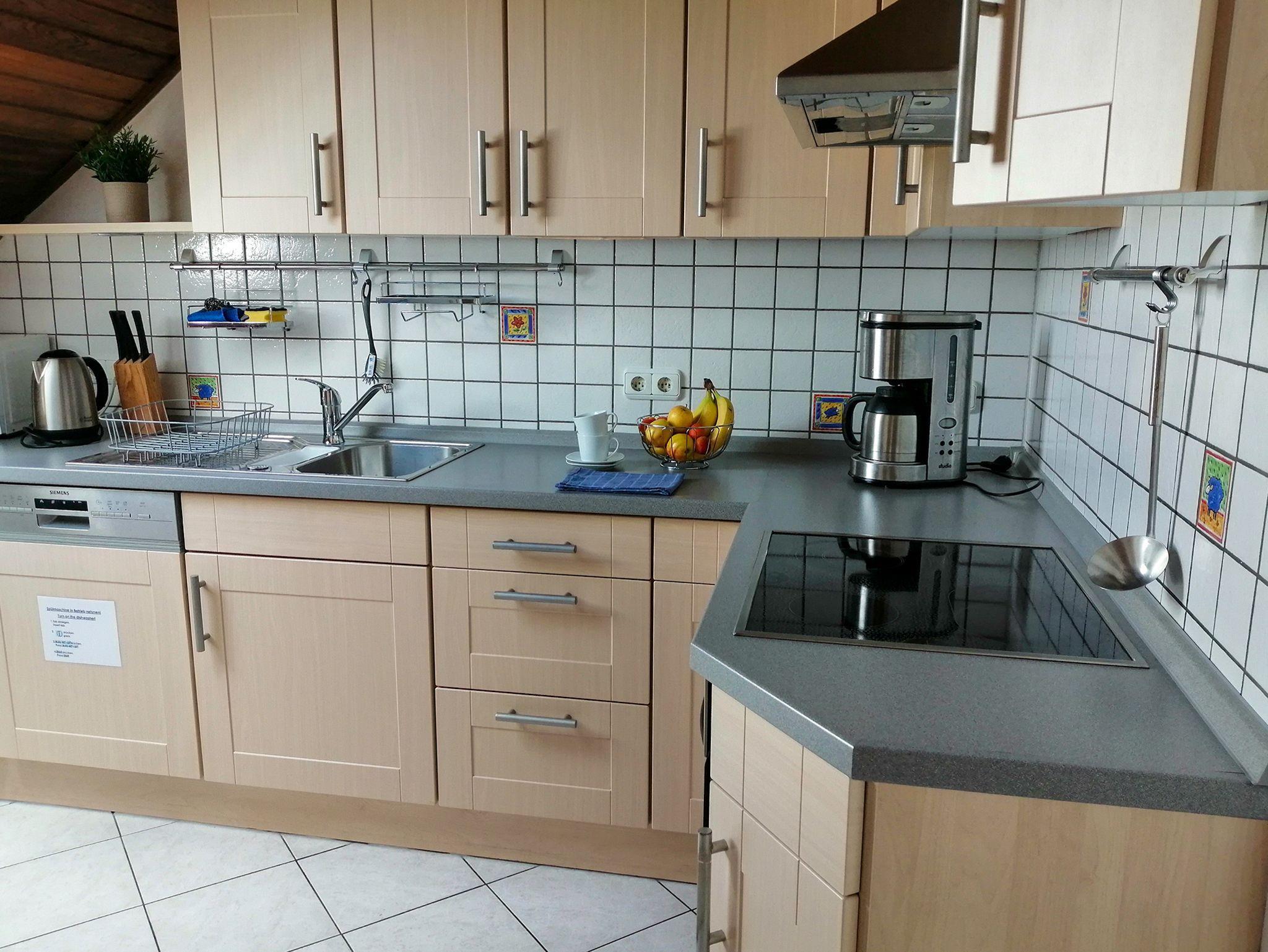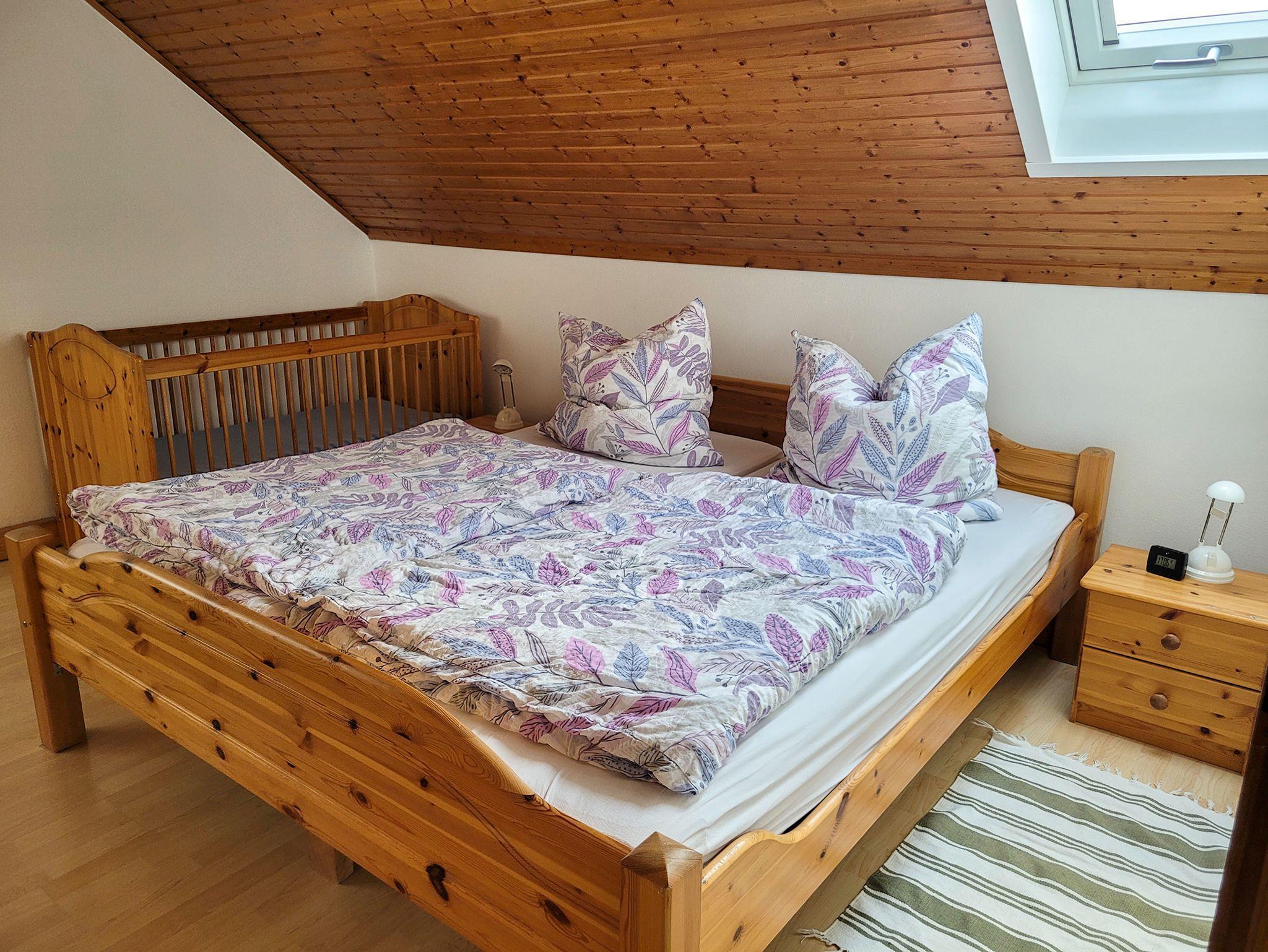 Diese wunderschöne Ferienwohnung bietet Ihnen den perfekten Rückzugsort für erholsame Tage. Die drei Schlafzimmer sind komfortabel und stilvoll eingerichtet: Das erste Schlafzimmer glänzt mit einem großzügigen Doppelbett (2,00m x 2,00m). Das zweite Schlafzimmer besticht durch ein gemütliches Holz-Bett (1,80m x 2,00m) und wird durch die im Osten aufehende Morgen-Sonne angenehm durchflutet. Das dritte Schlafzimmer bietet durch ein zusätzliches Kinderbett eine ideale Lösung für Familien. Alle Schlafräume sind mit einem Schrank, der für genügend Stauraum sorgt, eingerichtet. Die Betten lassen sich mit einem Lattenrost individuell einstellen. An jedem Fenster der Schlafräume befindet sich ein Fliegngitter. Das Wohnzimmer ist ein Highlight der Wohnung, ausgestattet mit einem bequemen Ecksofa, einem Tisch, einem Sessel und modernen Unterhaltungsmöglichkeiten (Satelitent-TV, Stereo-Anlage und DVD-Player) sorgt es ideal für entspannte Abende. Auf der großen, überdachten Terrasse können Sie die frische Luft genießen, grillen oder die Seele baumeln lassen. Erfrischungsmöglichkeit und Ort für die tägliche Körperpflege finden Sie im Badezimmer. Es ist mit einer Badewanne und Dusche, sowie frischen Handtüchern und einem Haartrockner ausgestattet. Die moderne, voll ausgestattete Küche lässt keine Wünsche offen. Mit hochwertigen Geräten wie Ceranfeld, Backofen, Mikrowelle, Geschirrspüler, Kaffeemaschine und einer Kaffeepadmaschine lassen sich wunderbar Mahlzeiten selbst zubereiten. Der separate Essbereich mit einer gemütlichen Eckbank und einem Hochstuhl für die kleinen Gäste macht das gemeinsame Essen besonders angenehm. Hier finden Sie alles, was Sie für einen unvergesslichen Aufenthalt benötigen – ein echtes Zuhause auf Zeit.