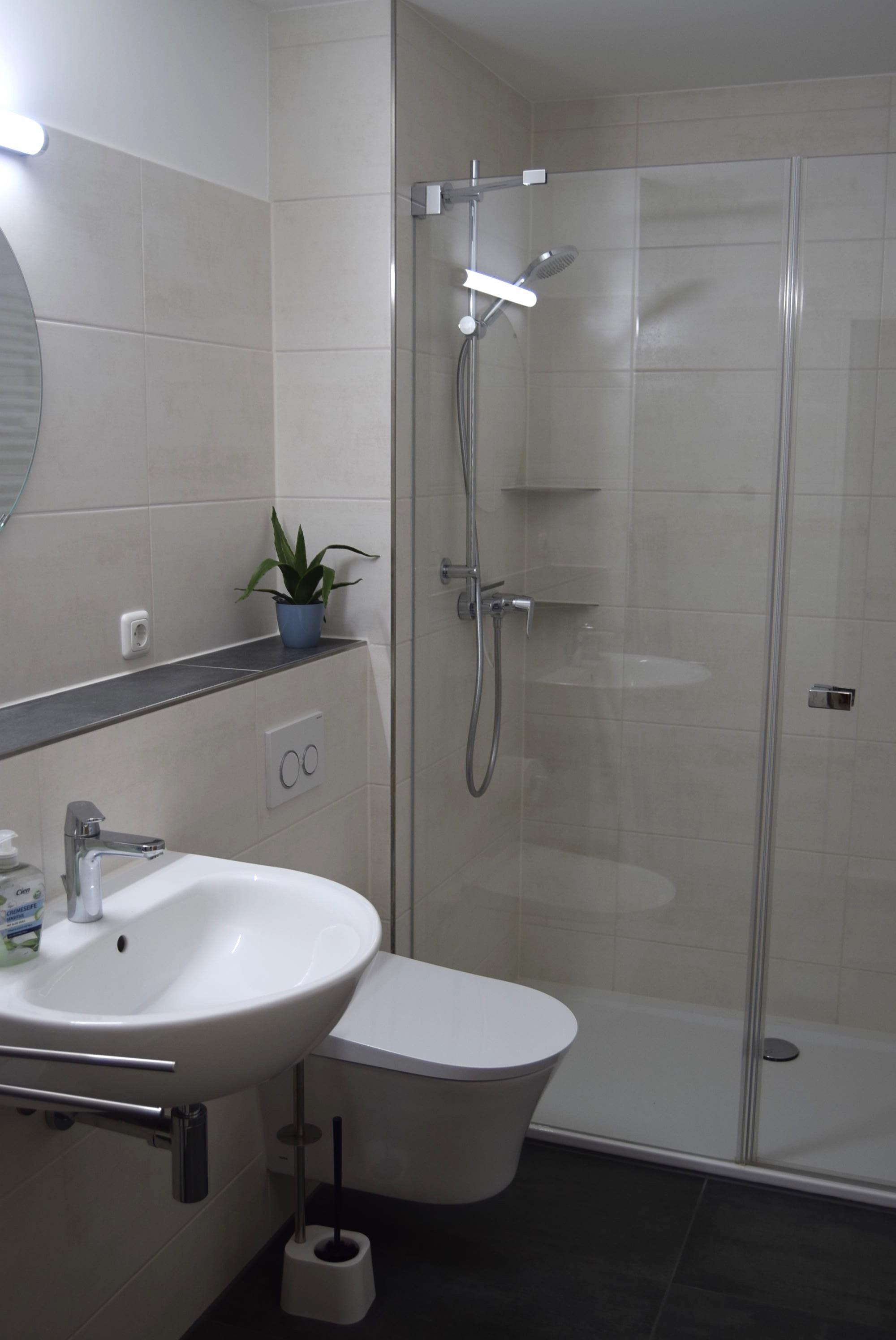 Das Badezimmer bietet Ihnen eine großzügige Dusche, damit Sie nach Belieben entspannen oder erfrischen können.