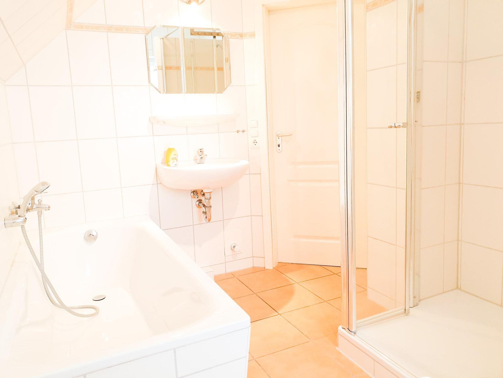 Ihnen steht ein modernes Bad mit Waschmaschine sowie ein separates Gäste-WC zur Verfügung.